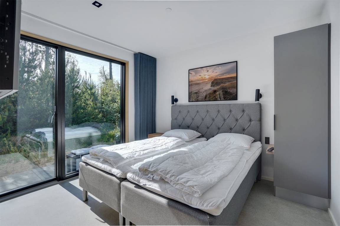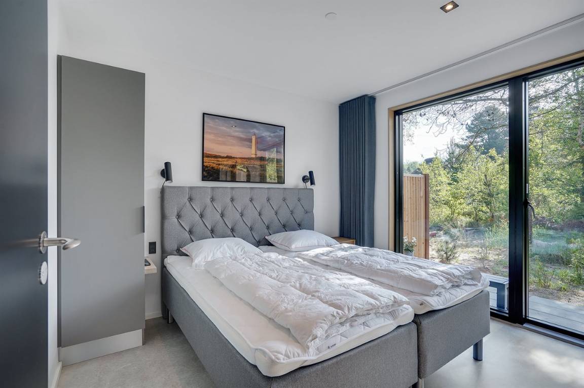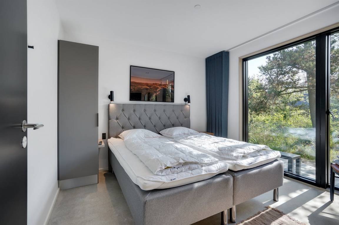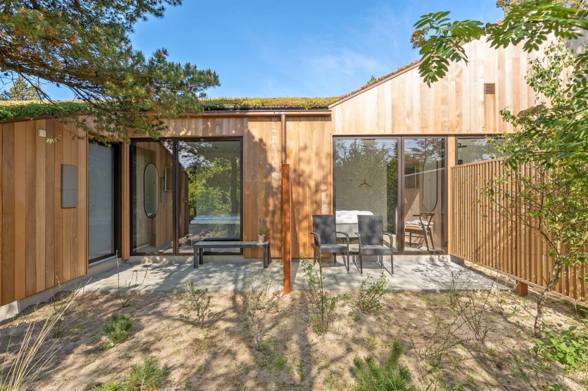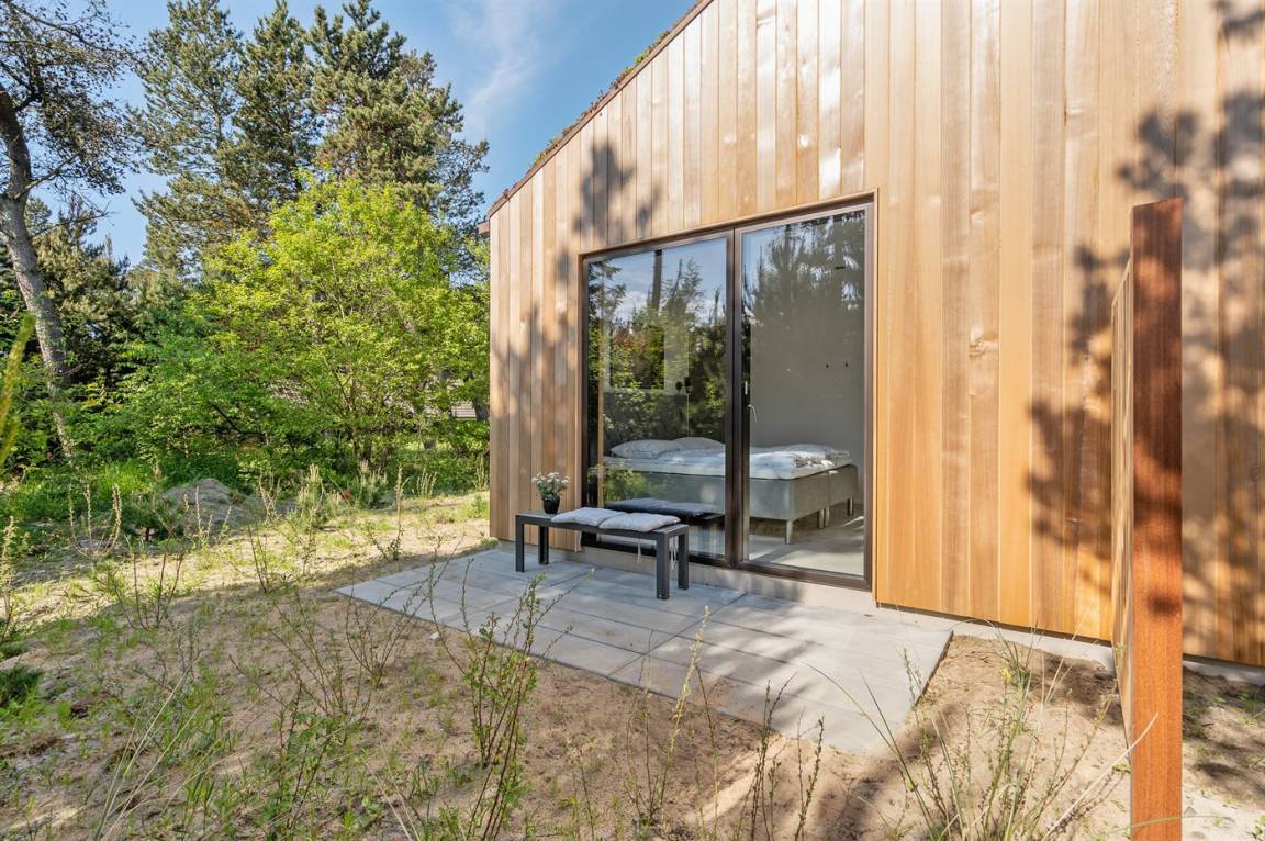 Ein tolles, von einem Architekten entworfenes Ferienhaus aus hochwertigen Materialien wie z. B. Eichenholz und Kupfer. Das Haus liegt in Blåvand – auf einem 2800 m² großen, ruhigen Naturgrundstück am Ende einer Sackgasse in malerischer Natur.