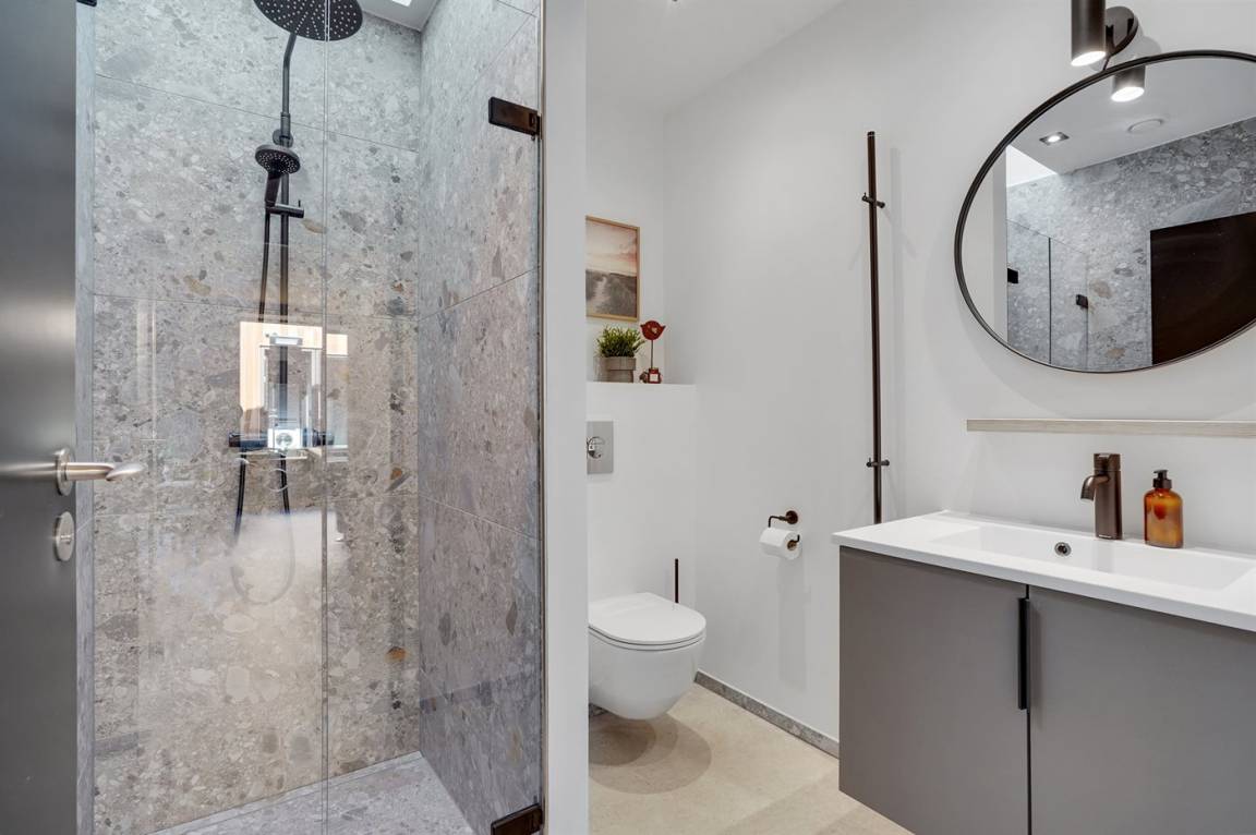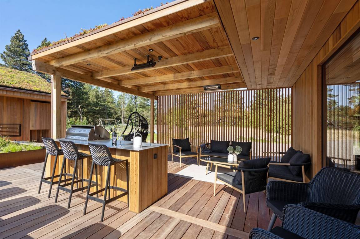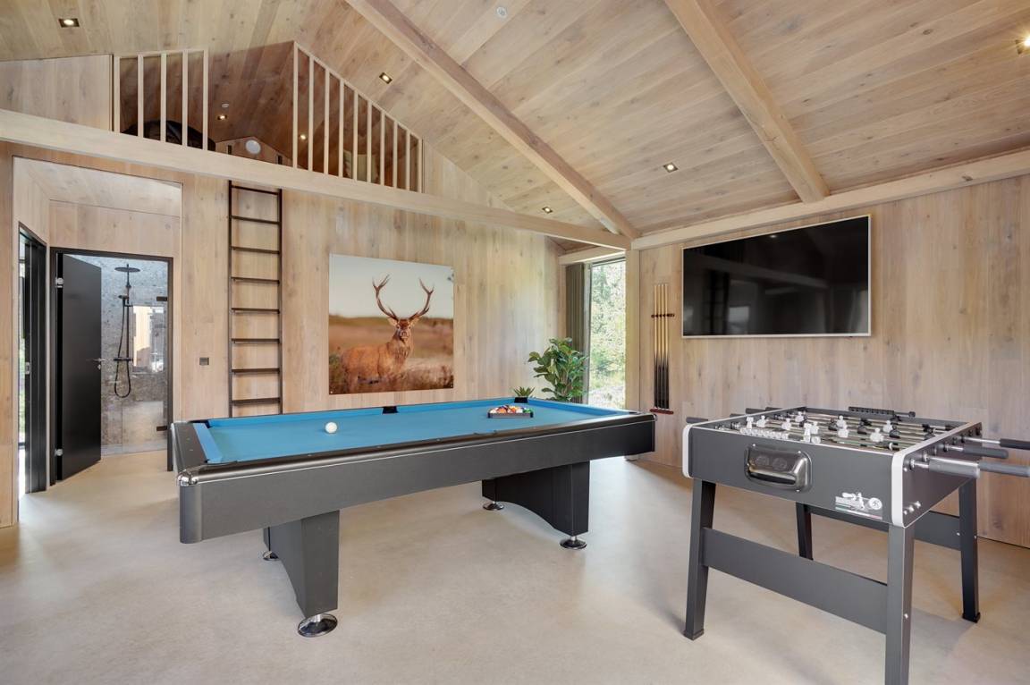 Draußen erwarten Sie ein großer, sonniger Außenbereich und eine schöne große überdachte Terrasse mit Terrassenheizern und Loungemöbeln. Die Außenküche bietet Ihnen die Möglichkeit, das Essen draußen zuzubereiten (von November bis einschließlich Februar ist das Wasser abgestellt).