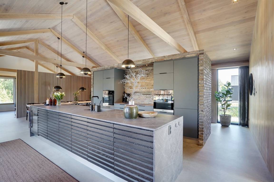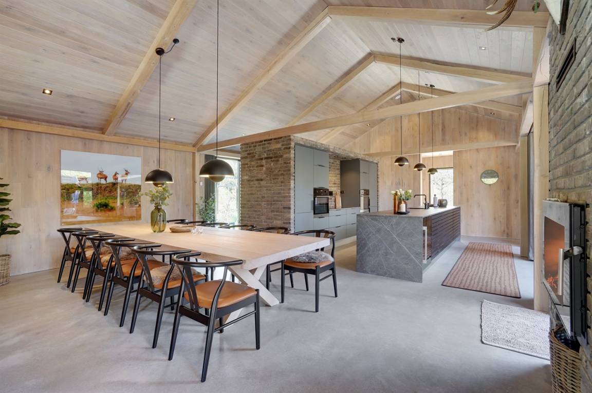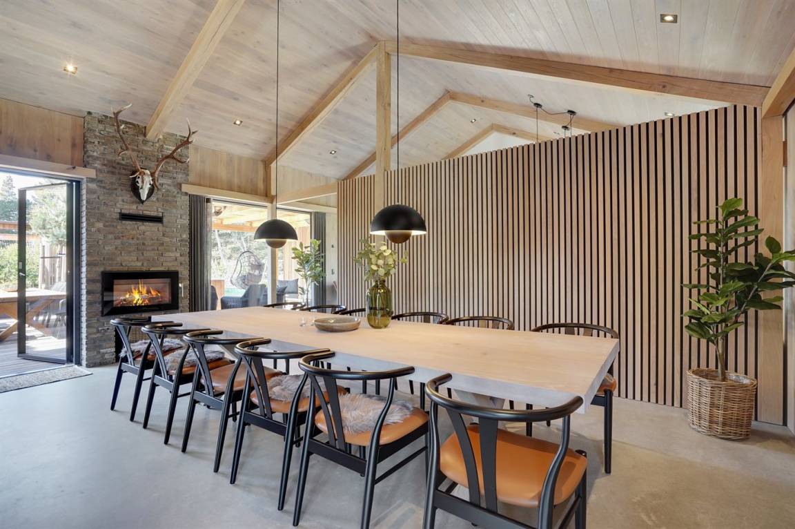 Die Küche ist mit 2 Backöfen, 2 Kühlschränken, einem Gefrierschrank, einer Spülmaschine, Induktionskochplatten und einem Weinkühlschrank ausgestattet. Das Ferienhaus wird mit einer energiesparenden Wärmerückgewinnungsanlage beheizt. Im ganzen Haus ist Fußbodenheizung installiert. In der Wohnküche sorgt ein Kaminofen für eine gemütliche Stimmung.