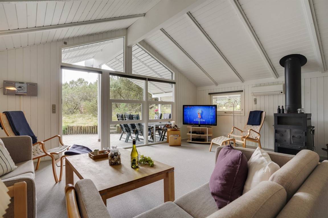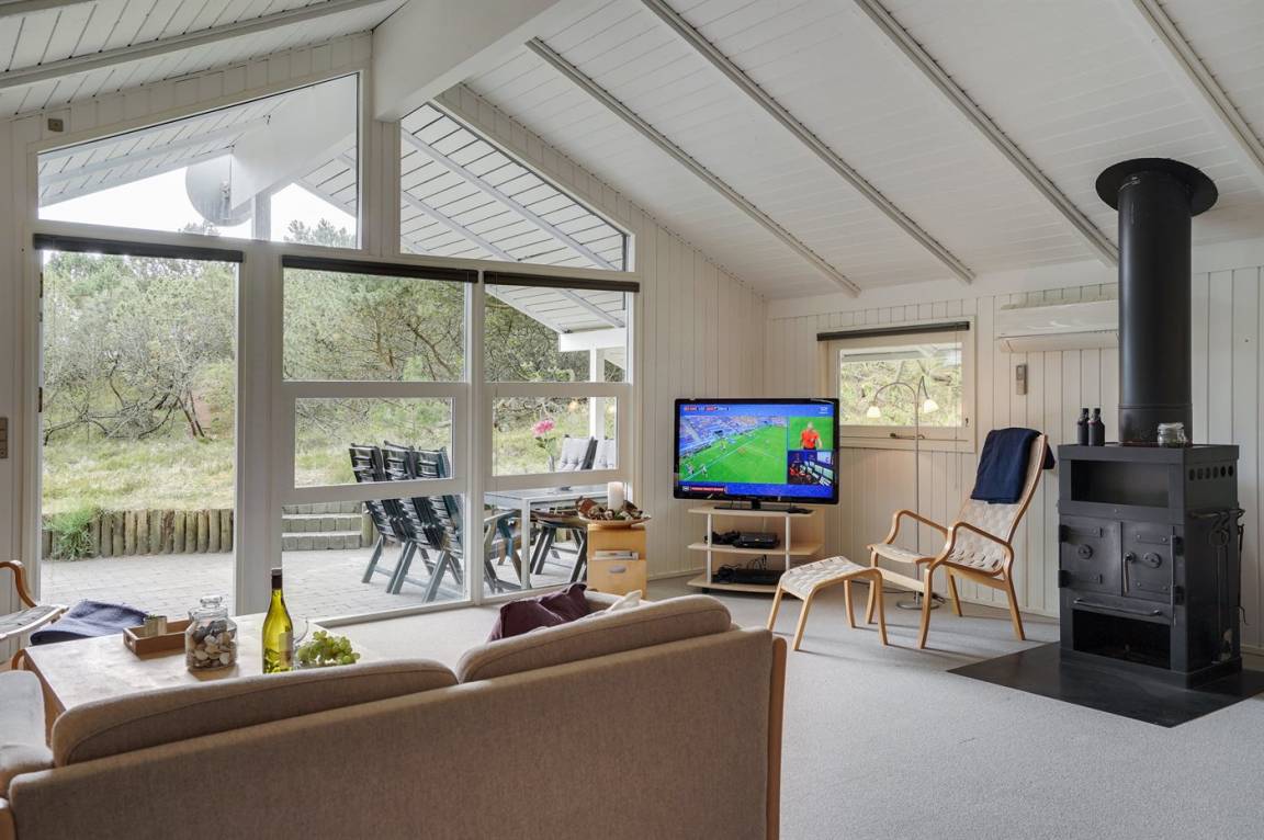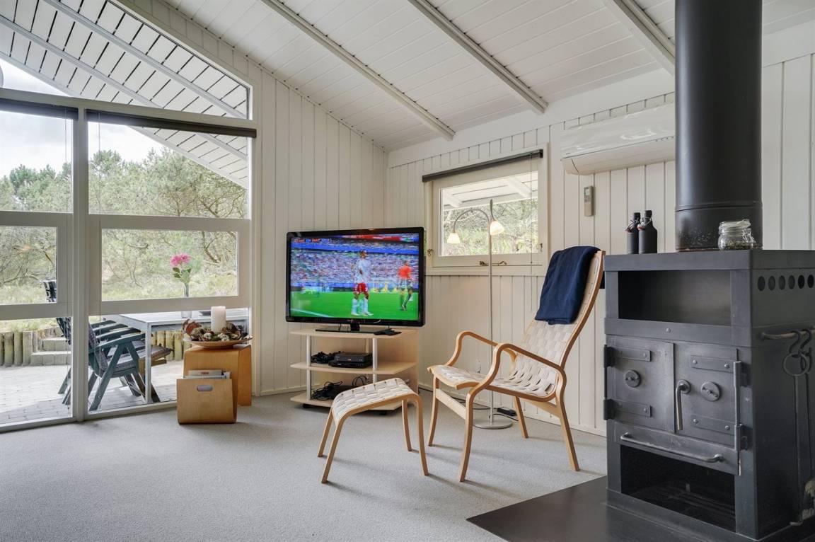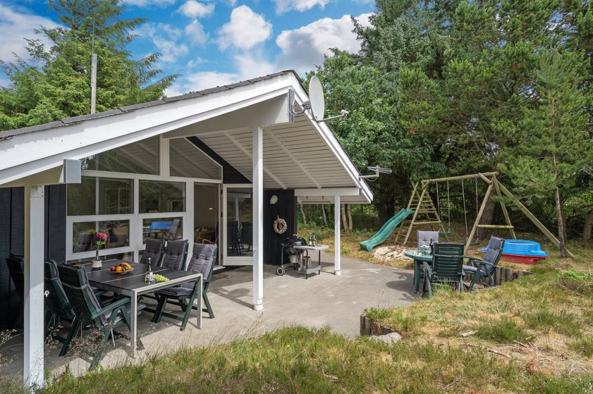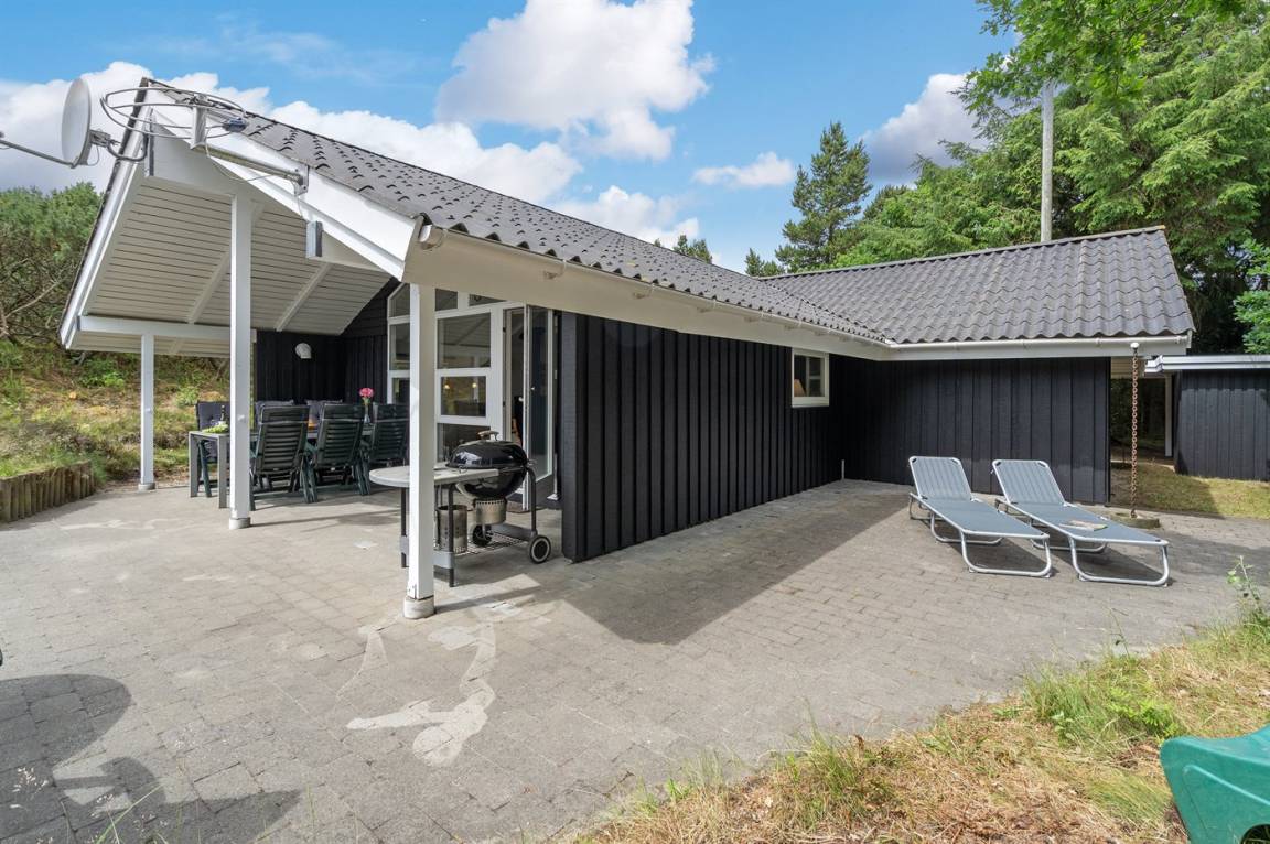 Dieses Ferienhaus aus Holz liegt auf einem ungestörten Naturgrundstück von hohen Tannen umgeben. Das Haus ist 1982 gebaut und 2002 mit neuem Badezimmer mit 2-Pers.-Whirlpool, Sauna und beheiztem Fußboden renoviert worden. Zum Haus gehören offene und überdachte Terrasse mit Gartenmöbeln. Die Wände sind mit Holz verkleidet und die Böden sind teils mit Teppich ausgelegt, teils mit Klinkern. Die Küche, die mit dem Wohnzimmer kombiniert ist, ist mit Geschirrspüler, Mikrowelle und Tiefkühlgerät ausgestattet. Im geräumigen und gut möblierten Wohnzimmer sind Kaminofen, Video, DVD-Spieler, TV mit digitalem Satellitenanschluss und Stereoanlage mit CD-Spieler vorh. Kostenlose ADSL-Internetverbindung (eigener Computer muss mitgebracht werden). Die 6 Schlafplätze verteilen sich auf 3 Zimmer, alle mit neuen Doppelbetten (2020). Waschmaschine, Wäschetrockner, Kinderhochstuhl, Carport, Sandkasten und Schaukel zur Verfügung. Dieses Haus wird zu jeder Jahreszeit einen guten Ausgangspunkt für einen gelungenen Urlaub an der Nordsee sein.