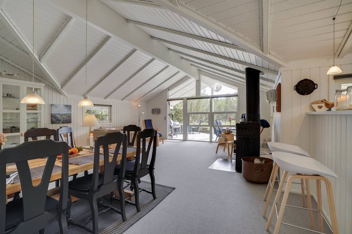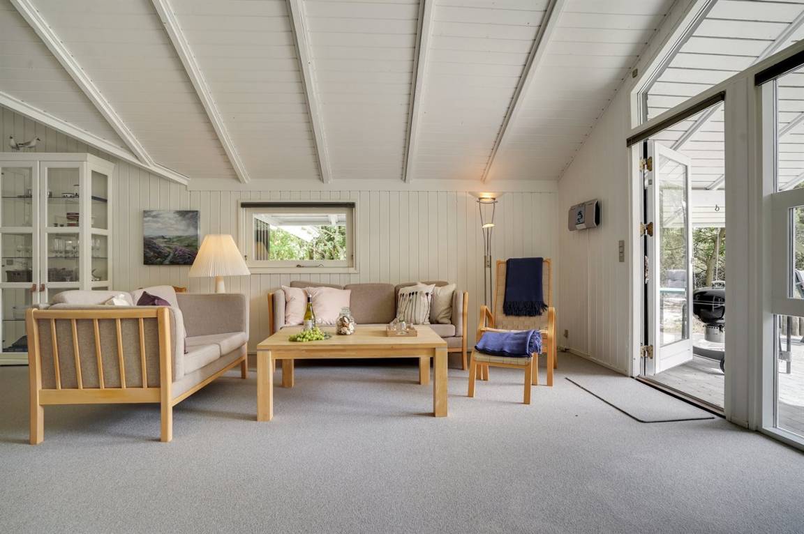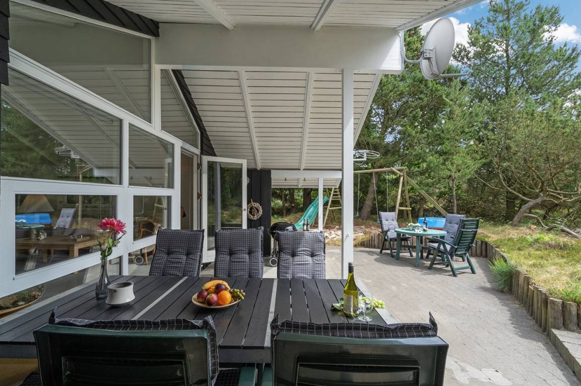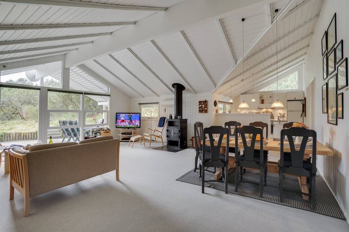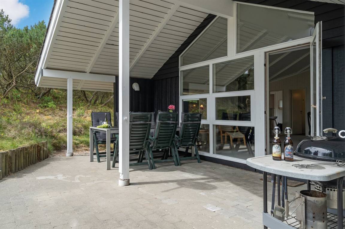 Dieses Ferienhaus aus Holz liegt auf einem ungestörten Naturgrundstück von hohen Tannen umgeben. Das Haus ist 1982 gebaut und 2002 mit neuem Badezimmer mit 2-Pers.-Whirlpool, Sauna und beheiztem Fußboden renoviert worden. Zum Haus gehören offene und überdachte Terrasse mit Gartenmöbeln. Die Wände sind mit Holz verkleidet und die Böden sind teils mit Teppich ausgelegt, teils mit Klinkern. Die Küche, die mit dem Wohnzimmer kombiniert ist, ist mit Geschirrspüler, Mikrowelle und Tiefkühlgerät ausgestattet. Im geräumigen und gut möblierten Wohnzimmer sind Kaminofen, Video, DVD-Spieler, TV mit digitalem Satellitenanschluss und Stereoanlage mit CD-Spieler vorh. Kostenlose ADSL-Internetverbindung (eigener Computer muss mitgebracht werden). Die 6 Schlafplätze verteilen sich auf 3 Zimmer, alle mit neuen Doppelbetten (2020). Waschmaschine, Wäschetrockner, Kinderhochstuhl, Carport, Sandkasten und Schaukel zur Verfügung. Dieses Haus wird zu jeder Jahreszeit einen guten Ausgangspunkt für einen gelungenen Urlaub an der Nordsee sein.