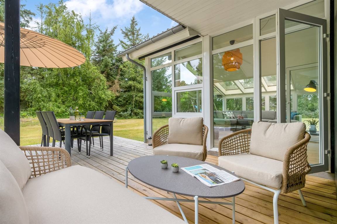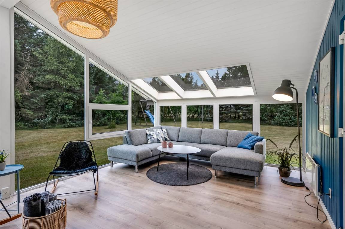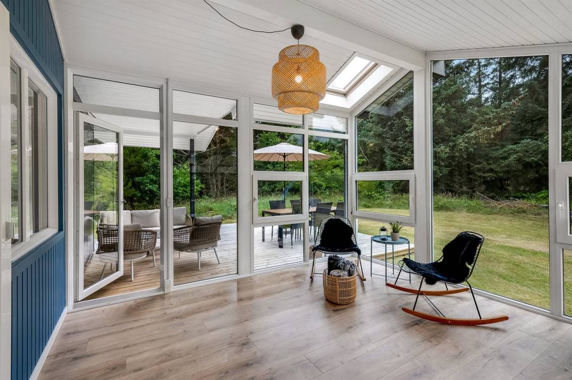 Dieses besonders schöne Ferienhaus liegt auf einem großen und gepflegten Grundstück mit Platz für Ballspiele und andere Aktivtäten im Freien. Zum Haus gehört ein sehr schöner Wintergarten.