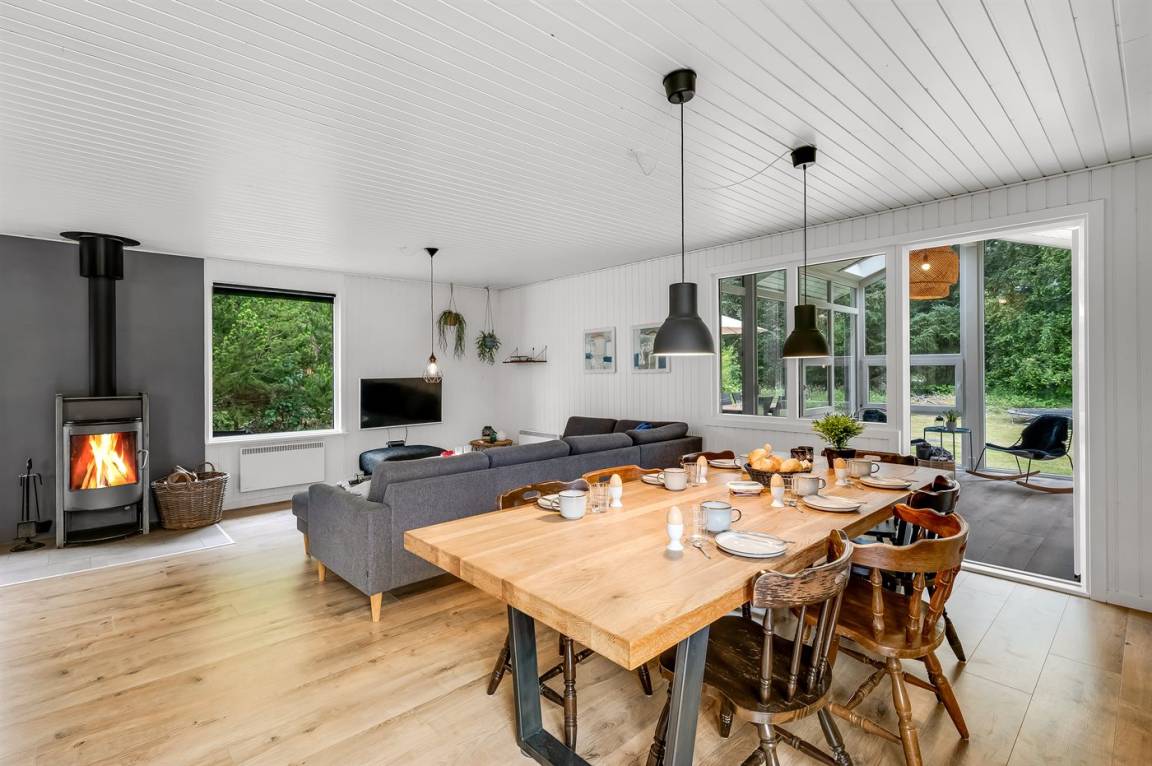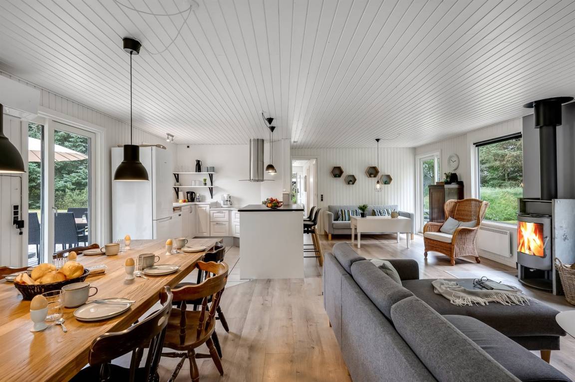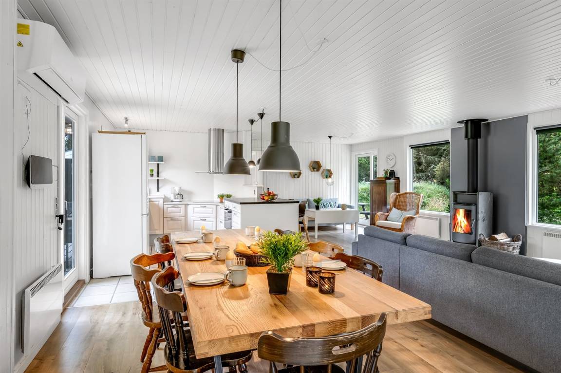 EinrichtungDas Ferienhaus eignet sich für 6 Personen sowie 1 Kleinkind bis zu 3 Jahren. Die Ferienunterkunft hat eine Wohnfläche von 125 m² und wurde 1977 gebaut. 2021 wurde die Ferienunterkunft teilweise renoviert. Haustiere dürfen nicht mitgebracht werden. Die Ferienunterkunft ist mit energiesparender Wärmepumpe ausgestattet. Die Ferienunterkunft ist mit Waschmaschine ausgestattet. Wäschetrockner. Tiefkühlmöglichkeit mit 70 Liter Nutzinhalt. Es gibt außerdem einen Kaminofen. Für die jüngsten Feriengäste ist 1 Kinderhochstuhl vorhanden.