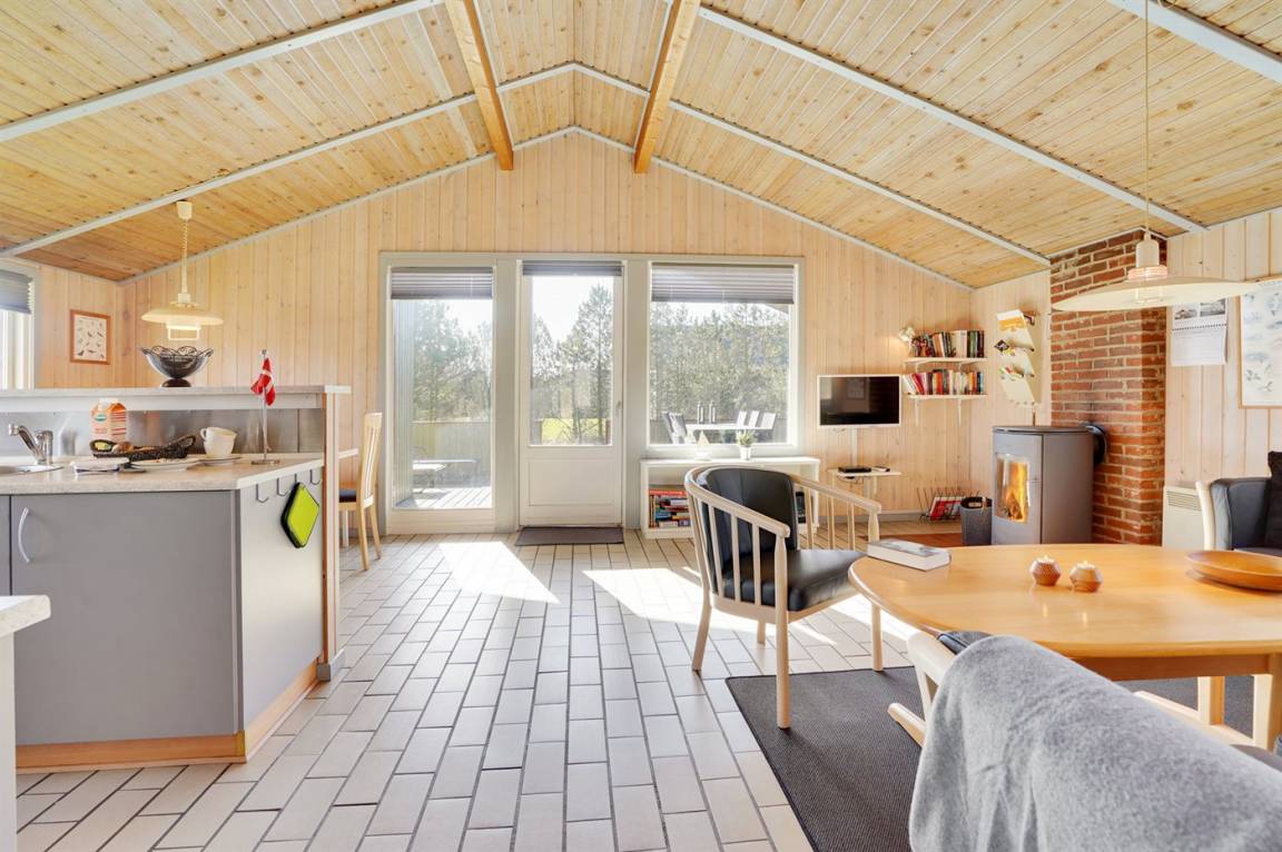 EinrichtungDas Ferienhaus eignet sich für 6 Personen sowie 1 Kleinkind bis zu 3 Jahren. Die Ferienunterkunft hat eine Wohnfläche von 91 m² und wurde 1984 gebaut. 2017 wurde die Ferienunterkunft mit einem neuen, schönen Badezimmer modernisiert. Es ist erlaubt 1 Haustier mitzubringen. Die Ferienunterkunft ist mit Waschmaschine ausgestattet. Wäschetrockner. Tiefkühlmöglichkeit mit 30 Liter Nutzinhalt. Es gibt außerdem einen Kaminofen. Für die jüngsten Feriengäste ist 1 Kinderhochstuhl vorhanden.