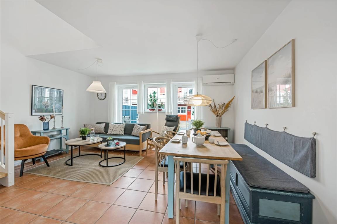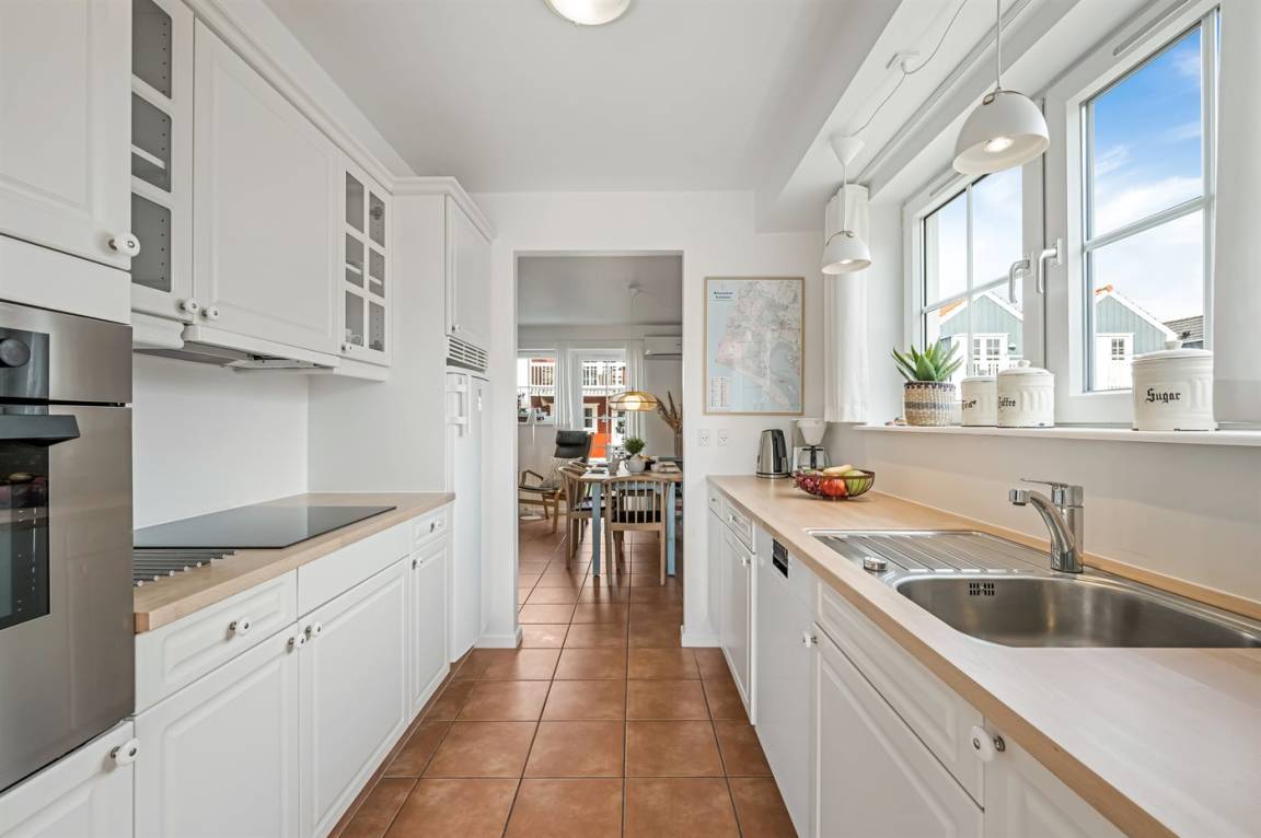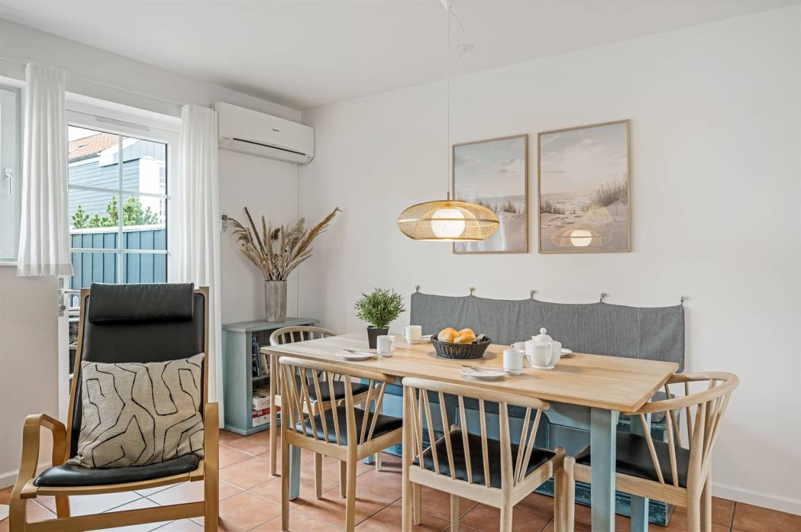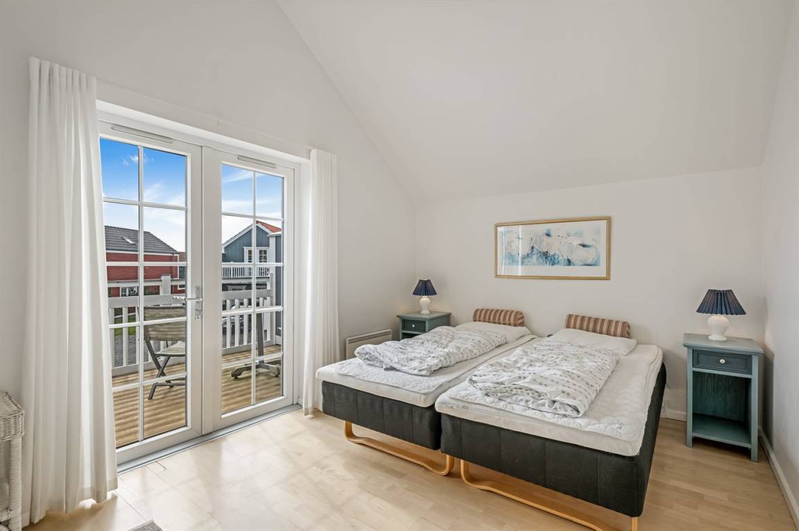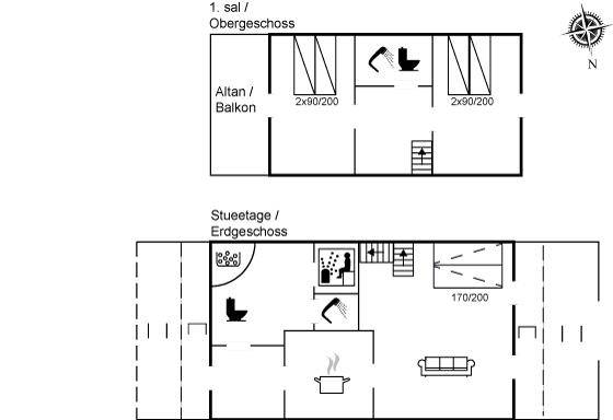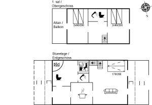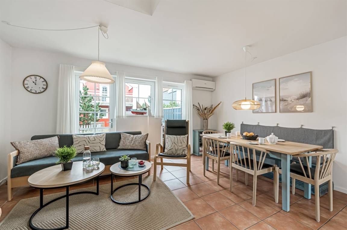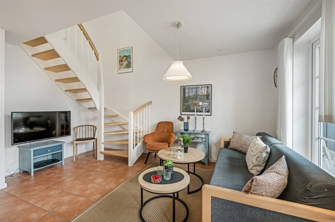 2-stöckige-Wohnung, die alles was man von einer modernen Ferienwohnung erwarten kann, enthält. Zu der Wohnung gehören ein Atriumgarten und ein großer Balkon. Innen sind die Böden im Erdgeschoss mit beheizbaren Klinkern ausgelegt. In den Zimmern im Obergeschoss sind die Böden mit Holz ausgelegt. Außenkamin mit Grilleinsatz vorhanden.