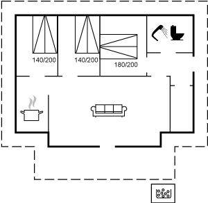 DraußenDie Ferienunterkunft liegt auf einem 1922 m² großen Naturgrundstück. Die Entfernung zum Meer beträgt 1600 m. Die nächste Einkaufsmöglichkeit liegt 900 m entfernt. Es steht ein 25 m² Terrassenareal zur Verfügung. Schaukel. Sandkasten. Trampolin. Parkplatz auf dem Grundstück.