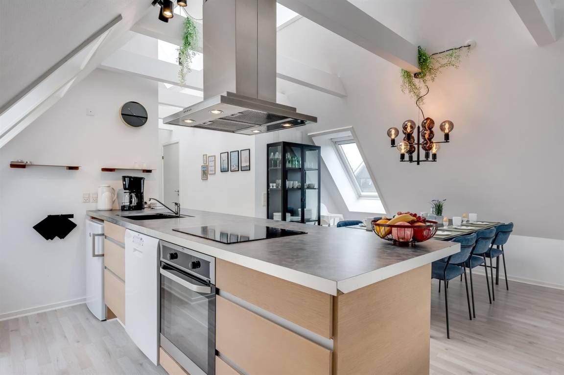 „Advice to other guests: Ruhige Wohnung, zentral gelegen Prior to the vacation at the holiday home: Vorfreude durch Infos von fejo. dk The vacation at the holiday home: Dachschräge und Dunstabzugshaube sind sehr eng nebeneinander. Man musste immer aufpassen, dass man den Kopf nicht anstößt und sich verletzt. The local office: Supernett. Wir hatten ein Code-Haus. Das war toll. Departure and follow up: Sehr unkompliziert. Wir brauchten nichts machen. Weder Schlüssel abgeben noch Zählerstände ablesen. The holiday home itself: Kleiderschränke oder Kommoden wären toll. Keine überflüssigen Dekoartikel fanden wir sehr angenehm.“