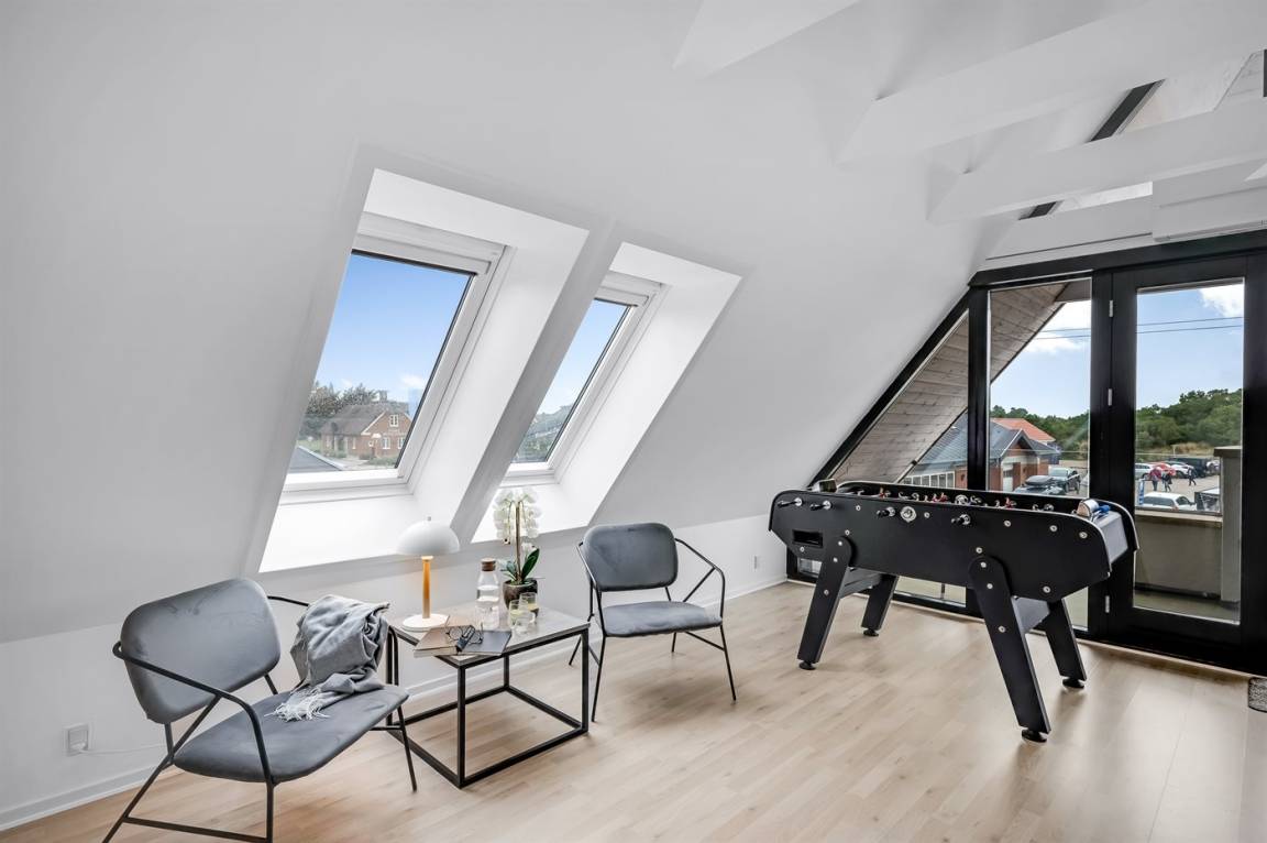 Mit zentraler Lage im Ferienort Blåvand, fußläufig vom Strand entfernt, finden Sie diese schöne Ferienwohnung im Obergeschoss. Vom Balkon der Wohnung aus haben Sie Ausblick auf die Stadt.