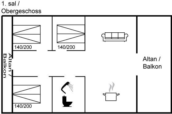 Diese Ferienwohnung eignet sich für 6 Personen sowie 1 Kleinkind bis zu 3 Jahren. Die Ferienunterkunft hat eine Wohnfläche von 86 m² und wurde 2006 gebaut. 2022 wurde die Ferienunterkunft teilweise renoviert. Es ist erlaubt 1 Haustier mitzubringen. In der Ferienunterkunft ist eine energiesparender Luft zu Luft Wärmepumpe installiert. Die Ferienunterkunft ist mit Waschmaschine ausgestattet. Wäschetrockner. Für die jüngsten Feriengäste ist 1 Kinderhochstuhl vorhanden.