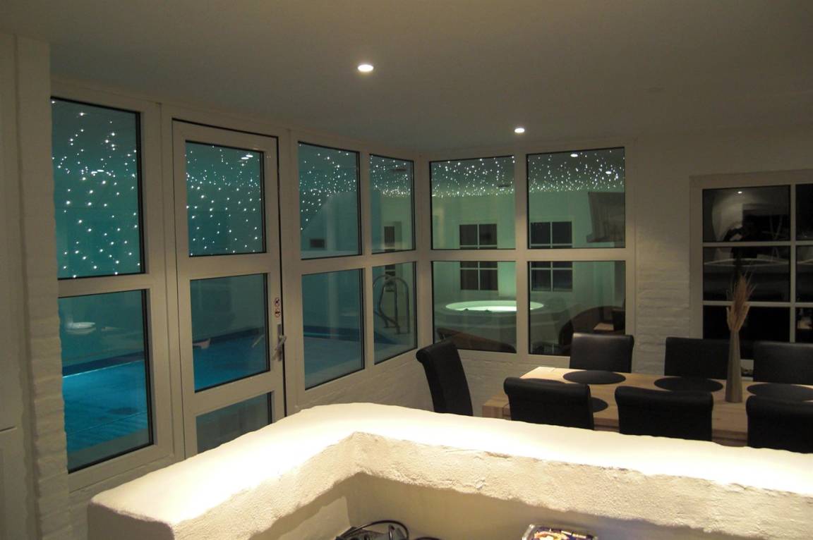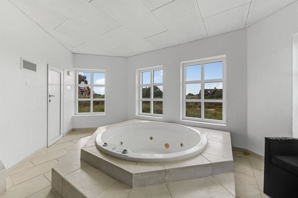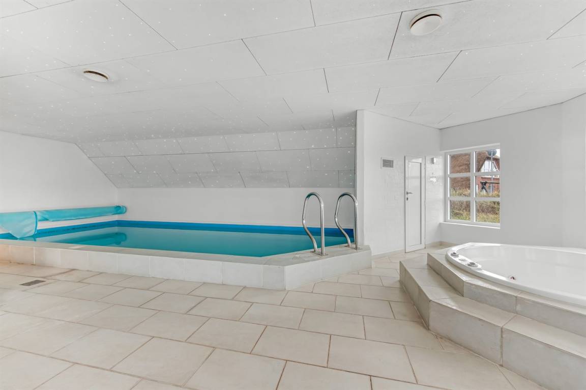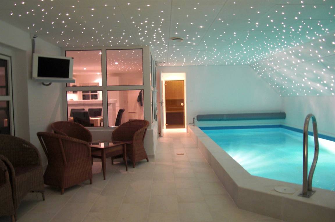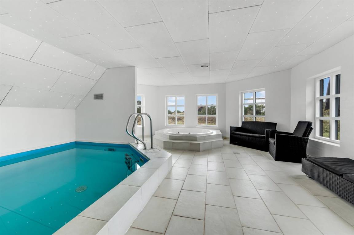 Schönes Ferienhaus mit einem herrlichen Wellnessbereich mit Swimmingpool, Spa und Sauna. Das Haus liegt nur 300 Meter vom Strand entfernt und bietet Platz für 10 Personen.