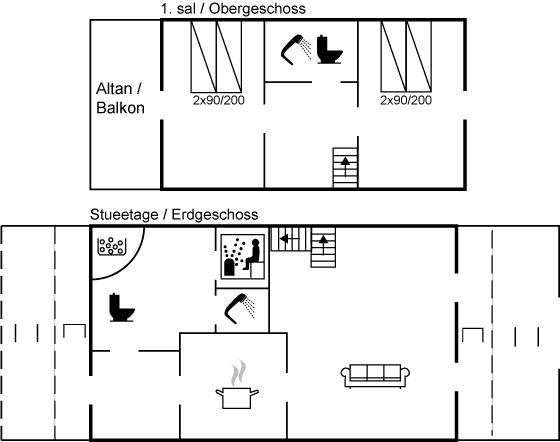 EinrichtungDiese Ferienwohnung eignet sich für 4 Personen sowie 1 Kleinkind bis zu 3 Jahren. Die Ferienunterkunft hat eine Wohnfläche von 92 m², ist 2-stöckig, und wurde 2005 gebaut. 2016 wurde die Ferienunterkunft teilweise renoviert. Haustiere dürfen nicht mitgebracht werden. Die Ferienunterkunft ist mit energiesparender Wärmepumpe ausgestattet. Die Ferienunterkunft ist mit Waschmaschine ausgestattet. Wäschetrockner. Tiefkühlmöglichkeit mit 87 Liter Nutzinhalt.