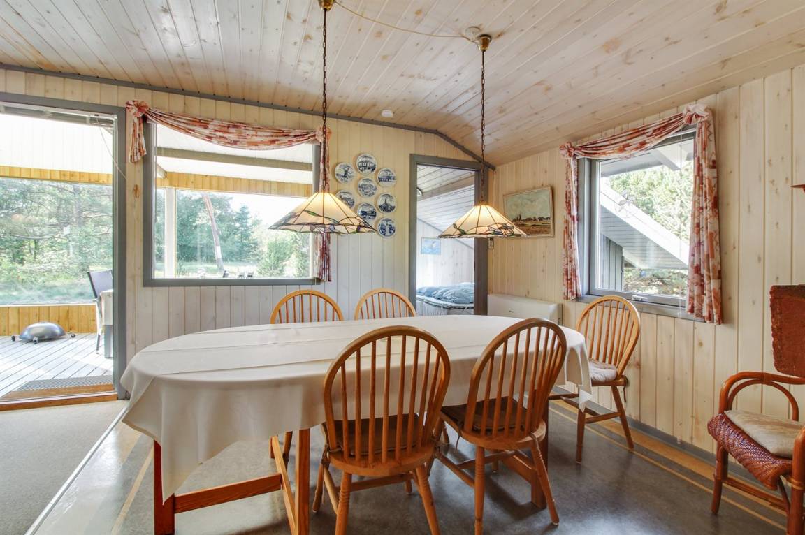 Dieses gute und geräumige Ferienhaus aus Holz, 1990 gebaut, liegt auf einem Naturgrundstück direkt an der Bucht von Ho. Sowohl vom Haus als auch vom Grundstück haben Sie eine schöne Aussicht über das Wasser. Zum Haus gehört ein großes sowohl offenes als auch überdachtes Terrassenareal mit Gartenmöbeln. Innen sind die Wände und Decken mit hellem Holz verkleidet. Teppichböden im ganzen Haus. Wohnzimmer mit Kaminofen (Holzbriketts dürfen nicht verwendet werden) und TV und analogem Satellitenanschluss. Die nette und funktionelle Küche ist u. a. mit Mikrowelle, Geschirrspüler und Tiefkühlgerät ausgestattet. Badezimmer mit beheizbarem Fliesenboden, Duschnische, Waschmaschine und Wäschetrockner. Es gibt 3 gute Schlafzimmer; 1 mit Doppelbett (180 x 200 cm) und 2 mit je 2 Einzelbetten. Für die jüngsten Feriengäste gibt es Sandkasten auf dem Grundstück. Übrigens: Nur 1 kleiner Hund erlaubt.