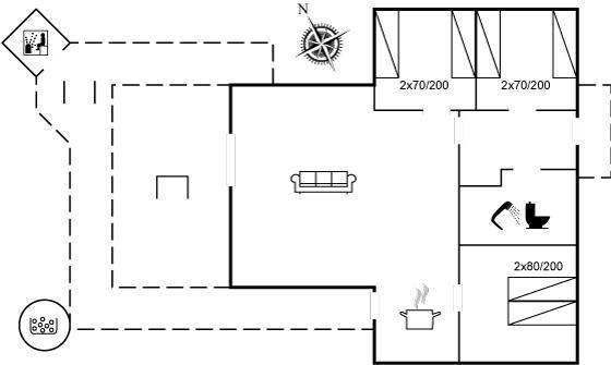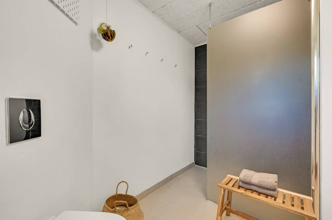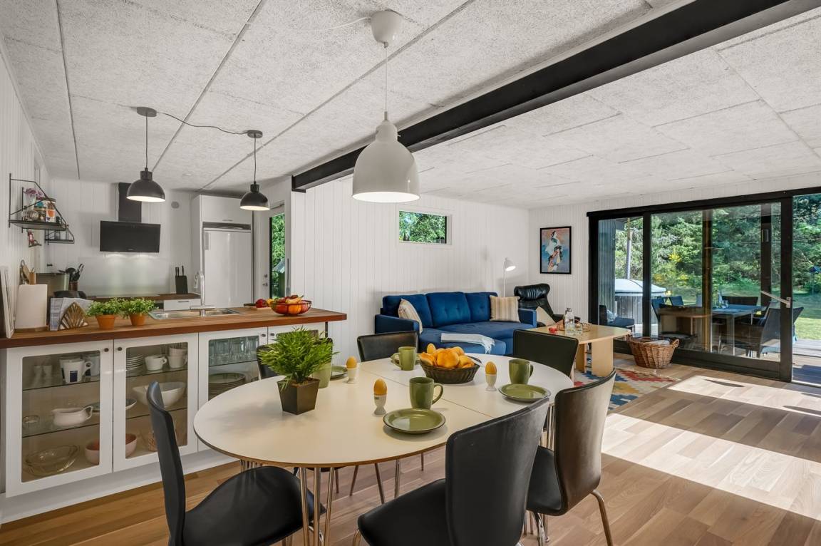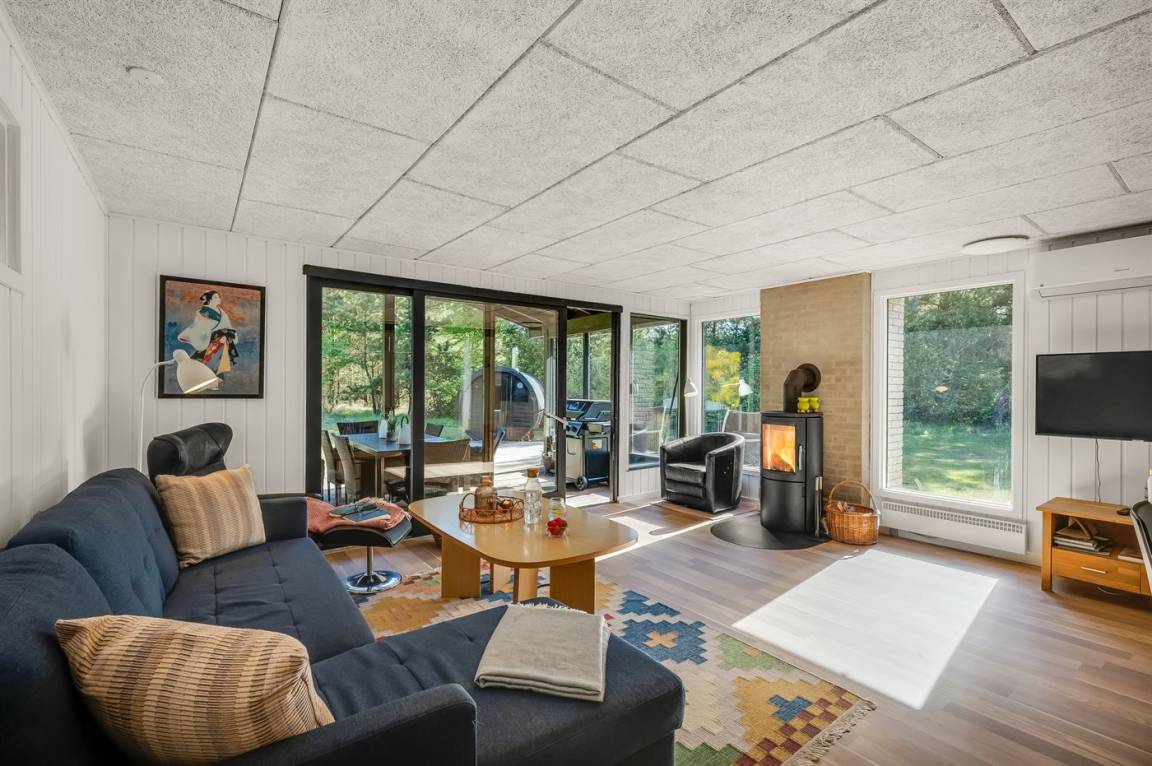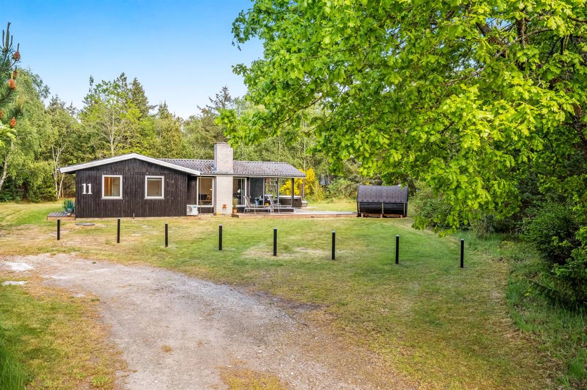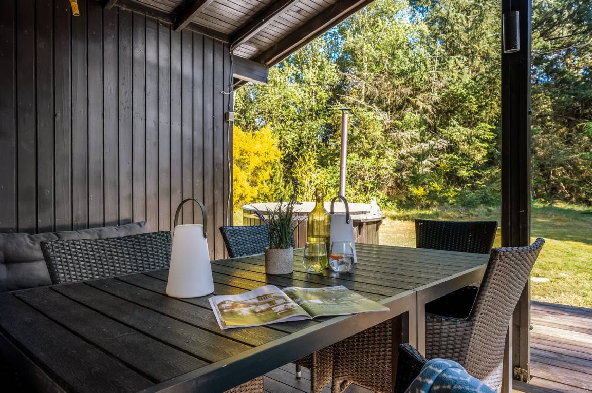 Das Ferienhaus liegt auf einem über 2.800 m² großen Naturgrundstück am Ende einer Sackgasse. Die hohen Bäume vermitteln den Eindruck, man sei allein in der Natur, und schirmen das Grundstück von der restlichen Umgebung ab, was für Windschutz und Privatsphäre sorgt. Hier inmitten der Natur Westjütlands könnt ihr euch mit einer Runde Sauna oder Hot-Tub verwöhnen und den Abend im warmen Wasser unter dem Sternenhimmel verbringen.