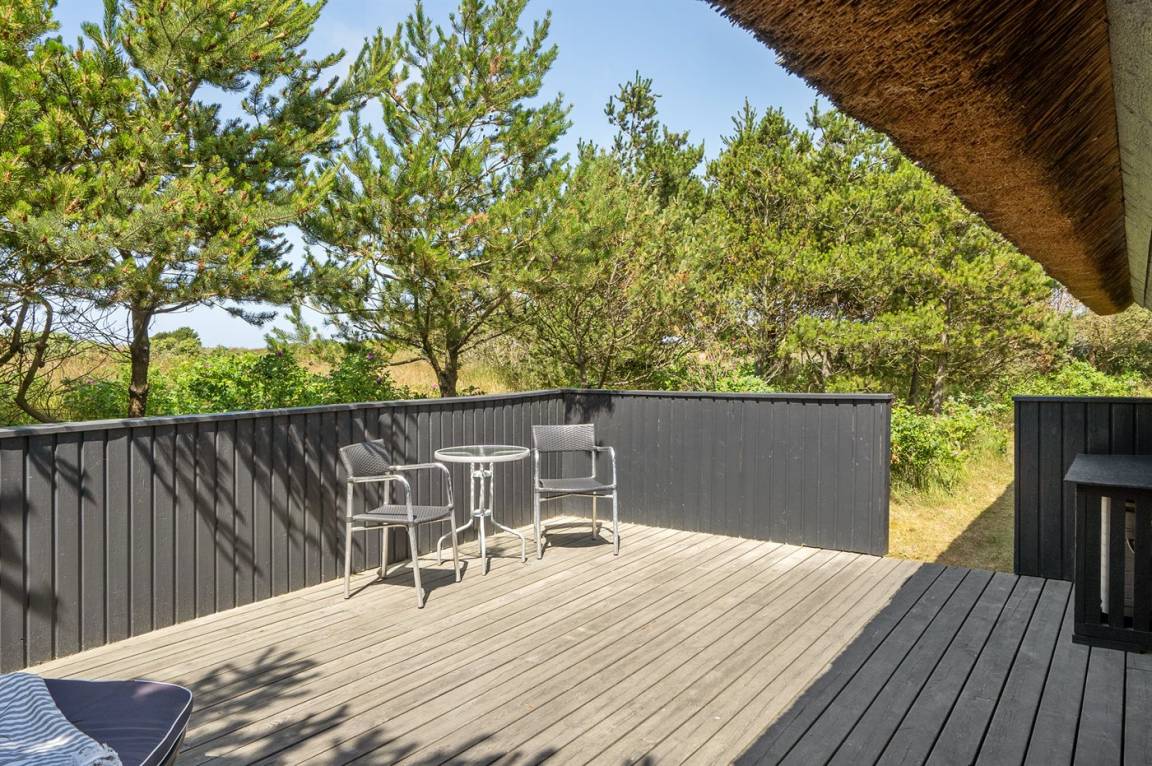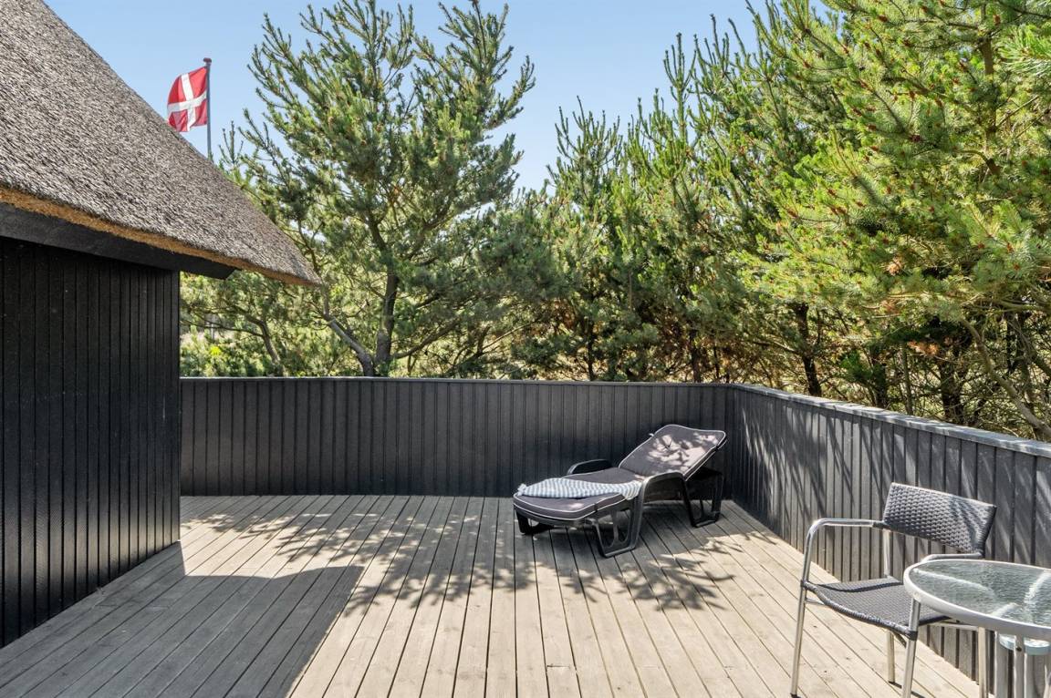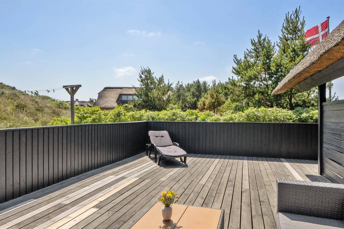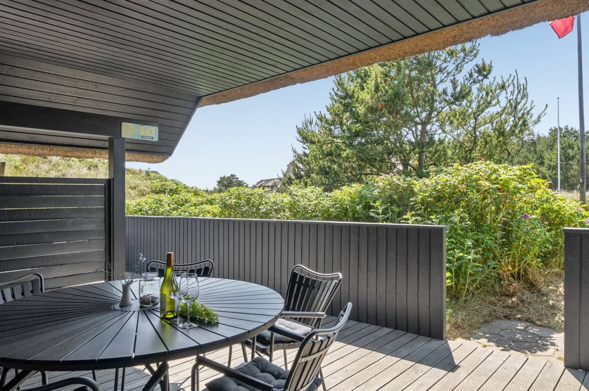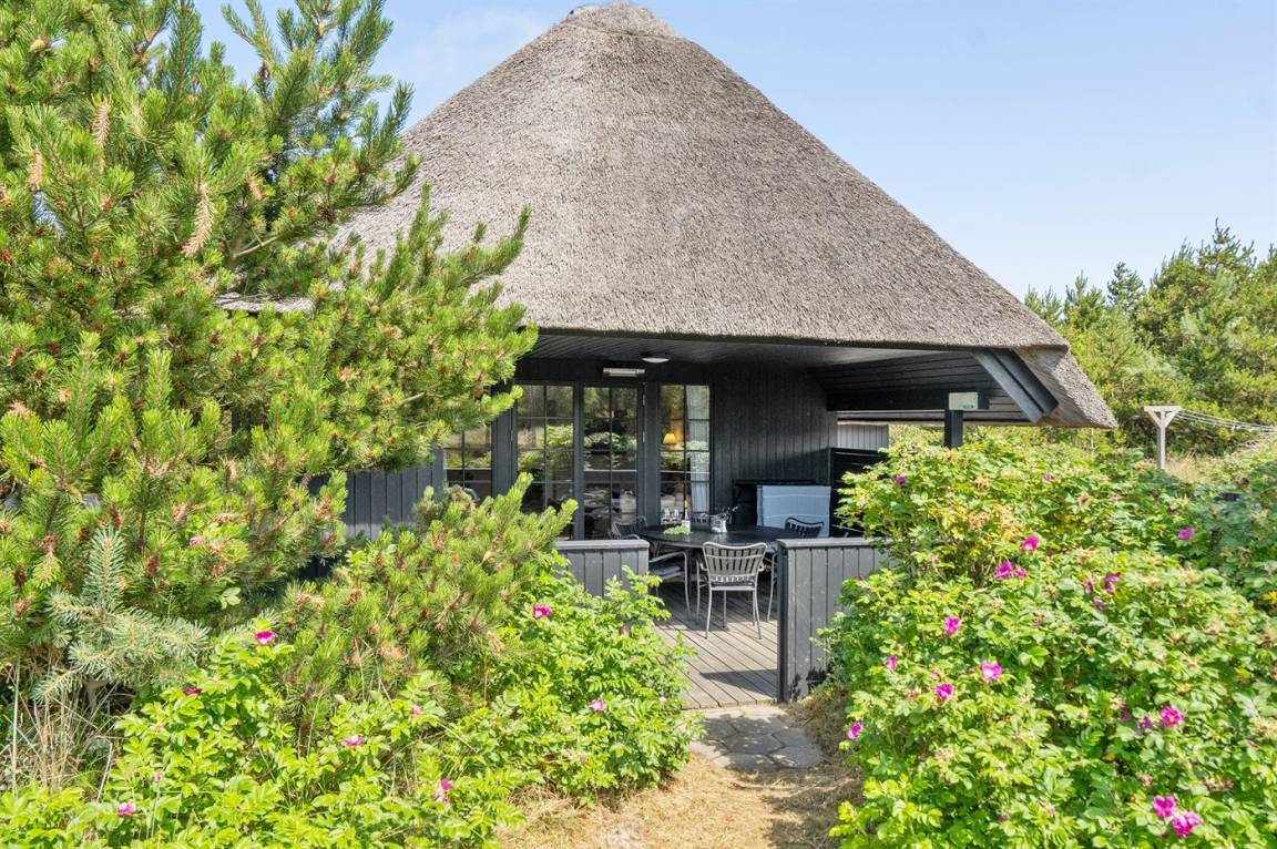 Ferienhaus aus Holz mit Reetdach. Das Haus ist 1986 gebaut und liegt auf einem Naturgrundstück, 500 von der Nordsee entfernt. Großes Terrassenareal mit Gartenmöbeln, Liegestühlen und Schaukel. Parkettböden, jedoch PVC-Boden in der Küche. Die Wände und die Decken sind mit hell gebeiztem Holz verkleidet. Herrliches Badezimmer mit beheizbarem Fliesenboden, Duschnische und Waschmaschine. Von hieraus gibt es außerdem Zugang zur Sauna des Hauses. Gut ausgestattete, helle Küchenabteilung mit Tiefkühlgerät, Mikrowelle und Geschirrspüler. Im Wohnzimmer gibt es Kaminofen und TV mit digitalem Satellitenanschluss. Vom Wohnzimmer gibt es Zugang zur Terrasse. Es ist eine energiegerechte Wärmepumpe installiert. Ein gut ausgestattetes Ferienhaus.