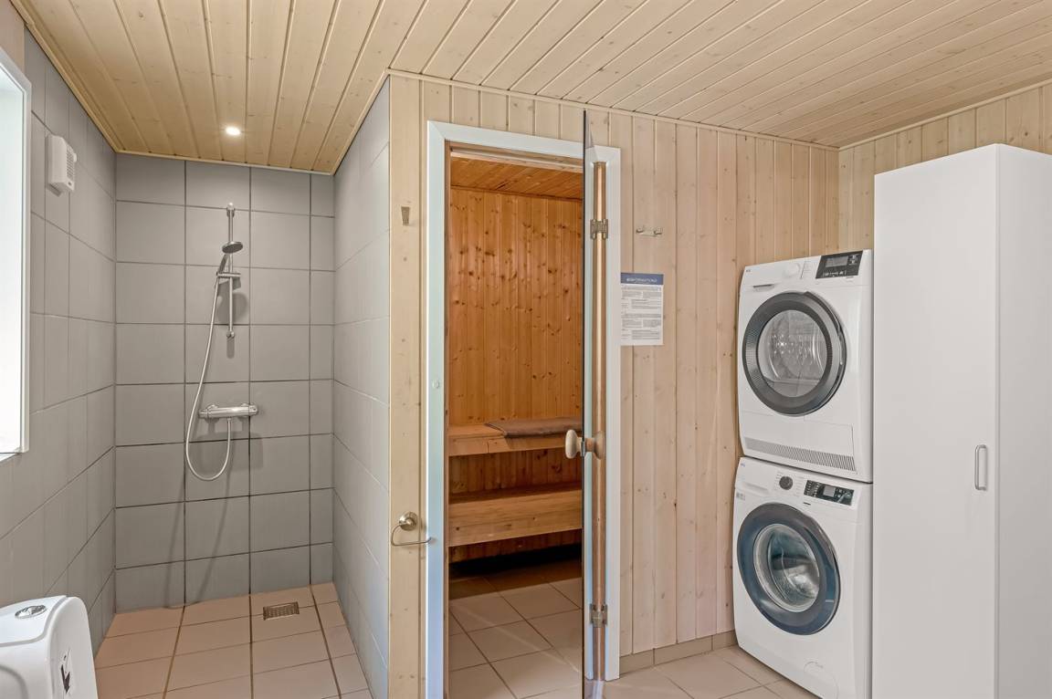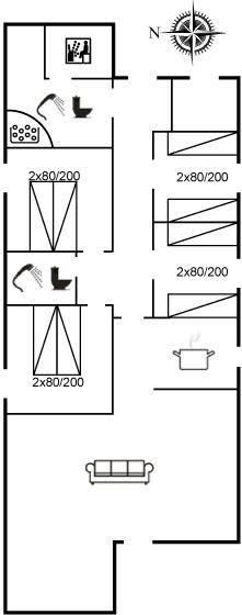 Es gibt zwei Badezimmer, beide mit Duschnische. Vom dem einen Badezimmer aus hast du Zugang zur Sauna und zum Whirlpool für zwei Personen.