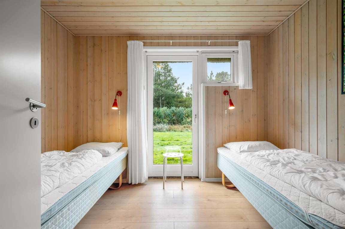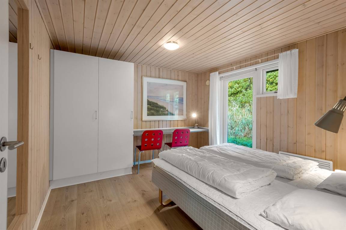 Die Schlafplätze verteilen sich auf vier schöne Schlafzimmer; Zwei mit Doppelbett und zwei mit je zwei Einzelbetten. Alle Schlafzimmer sind geräumig und haben einen eigenen Ausgang ins Freie. In zwei der Zimmer gibt es zudem einen kleinen Schreibtisch.