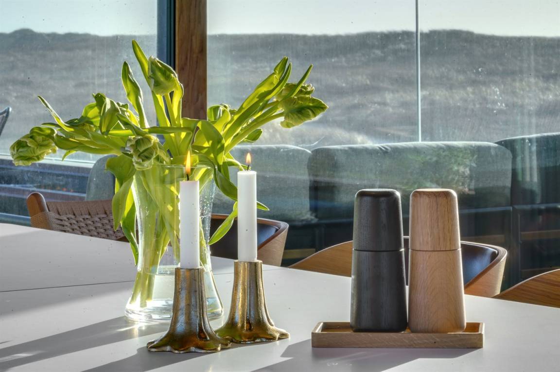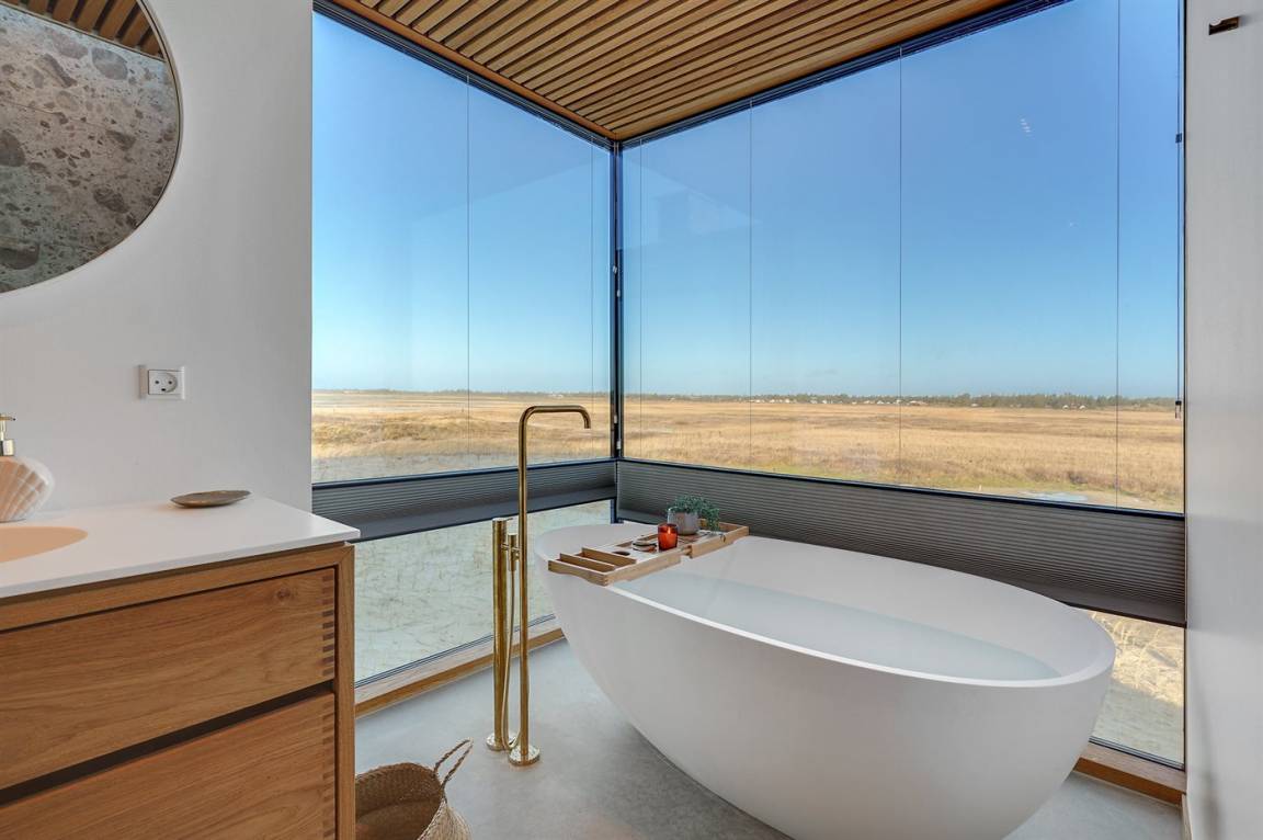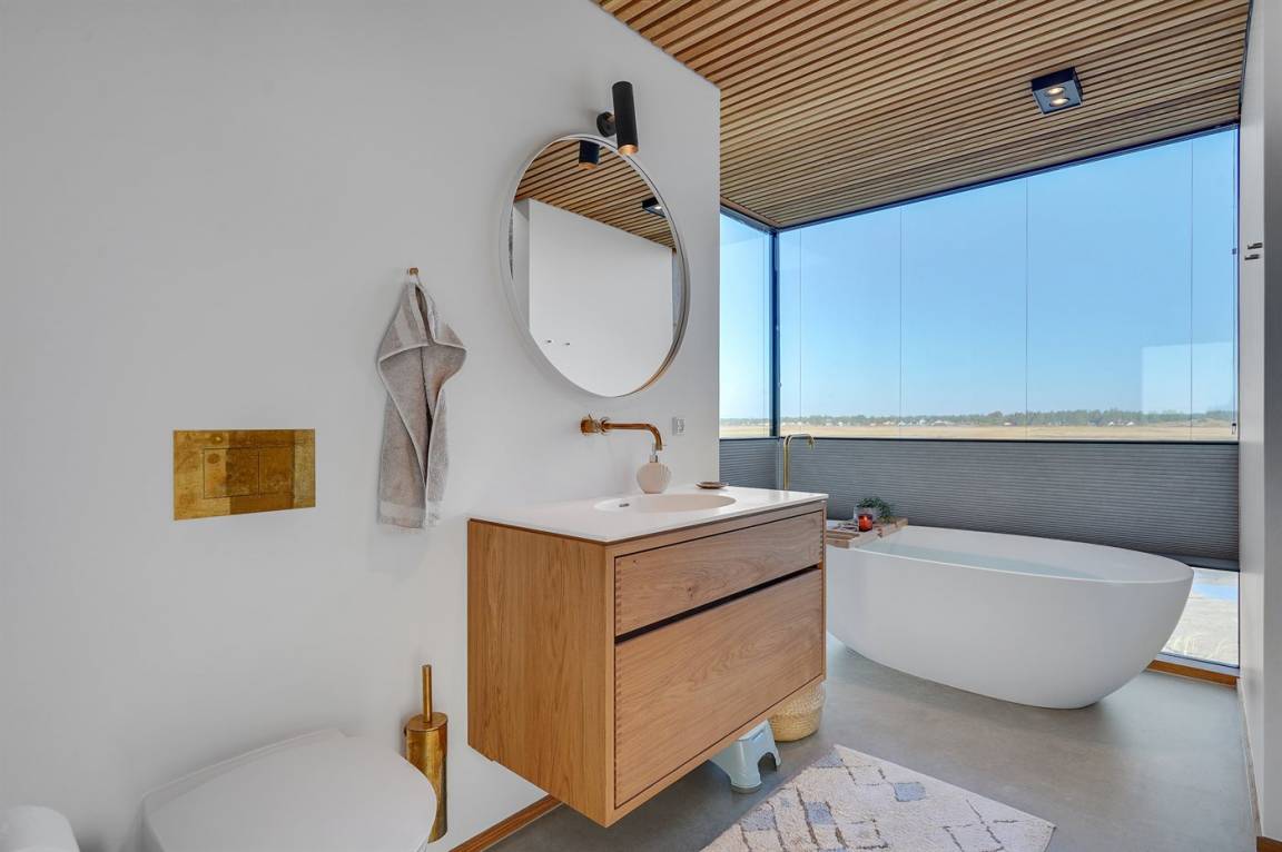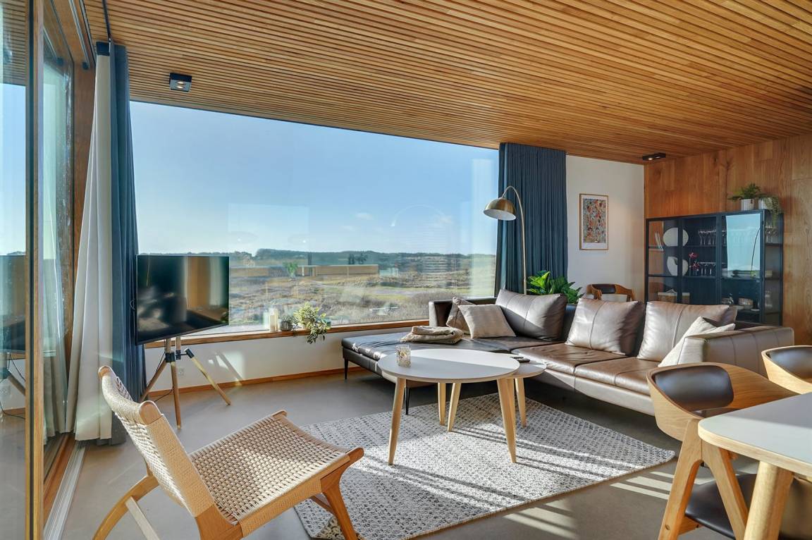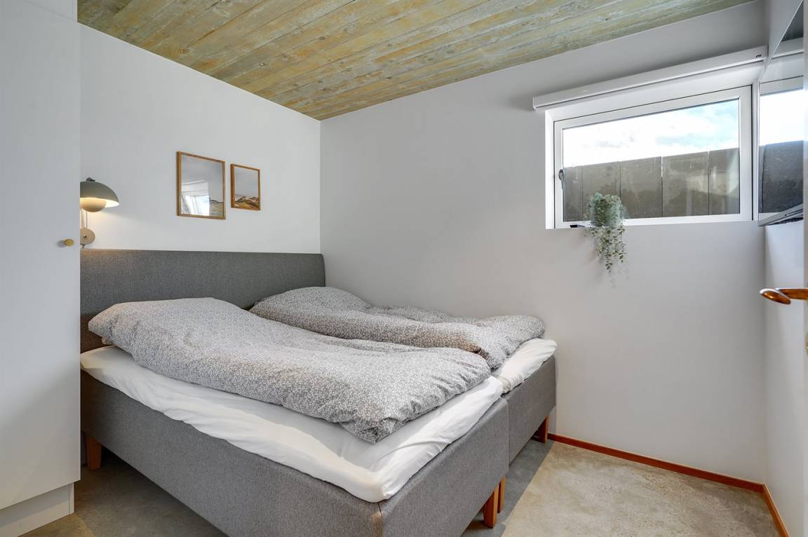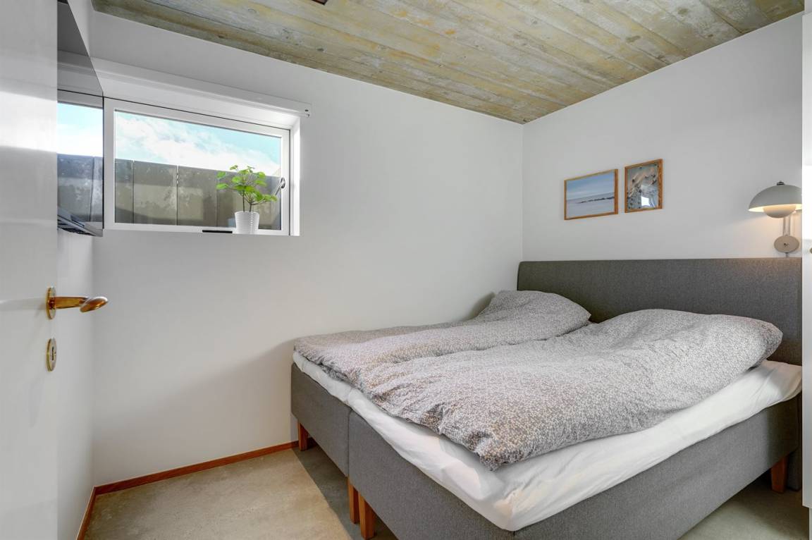 Die Innenräume des Hauses empfangen Sie mit hellen Wänden, Eichenholzdecken und -möbeln sowie mit modernen polierten Betonböden mit Fußbodenheizung. Das Haus hat zwei Stockwerke mit je 83 m² und verfügt über Eingangsbereich, Wohnzimmer/Küche, ein großes Schlafzimmer mit Stauraum, ein schönes Badezimmer mit Badewanne und Ausblick auf den Leuchtturm von Blåvand sowie das offene Land.
