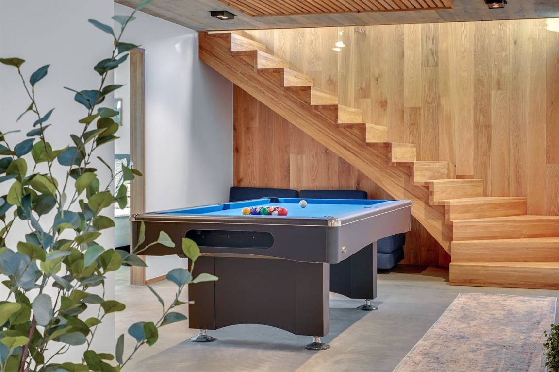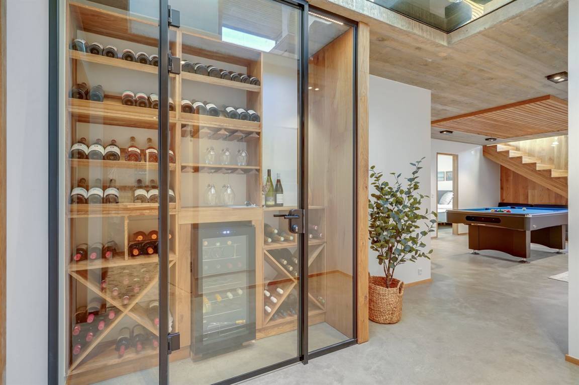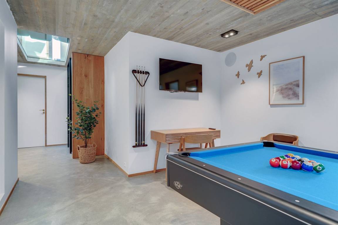 In der Kelleretage befinden sich 2 Zimmer mit Doppelbetten, großem Badezimmer mit Doppeldusche und Zugang zur Infrarotsauna. Außerdem steht hier ein Aufenthaltsraum mit Billardtisch und ein Geräteraum mit Waschmaschine, Trockner und Tiefkühlmöglichkeit mit 250 l Fassungsvermögen zur Verfügung. Von hier gelangt man auch in den kleinen Weinkeller des Hauses, wo Sie auf geschmackliche Entdeckungsreise gehen können.