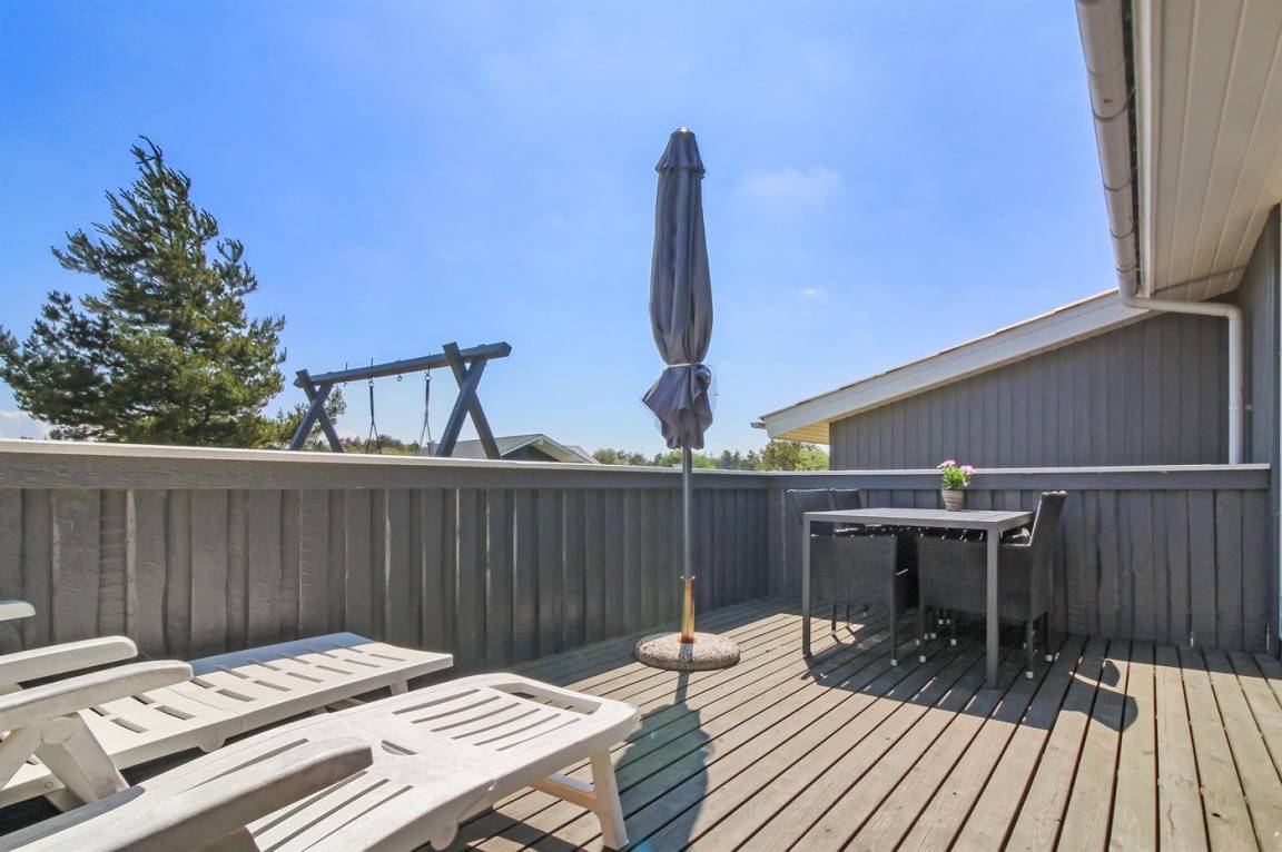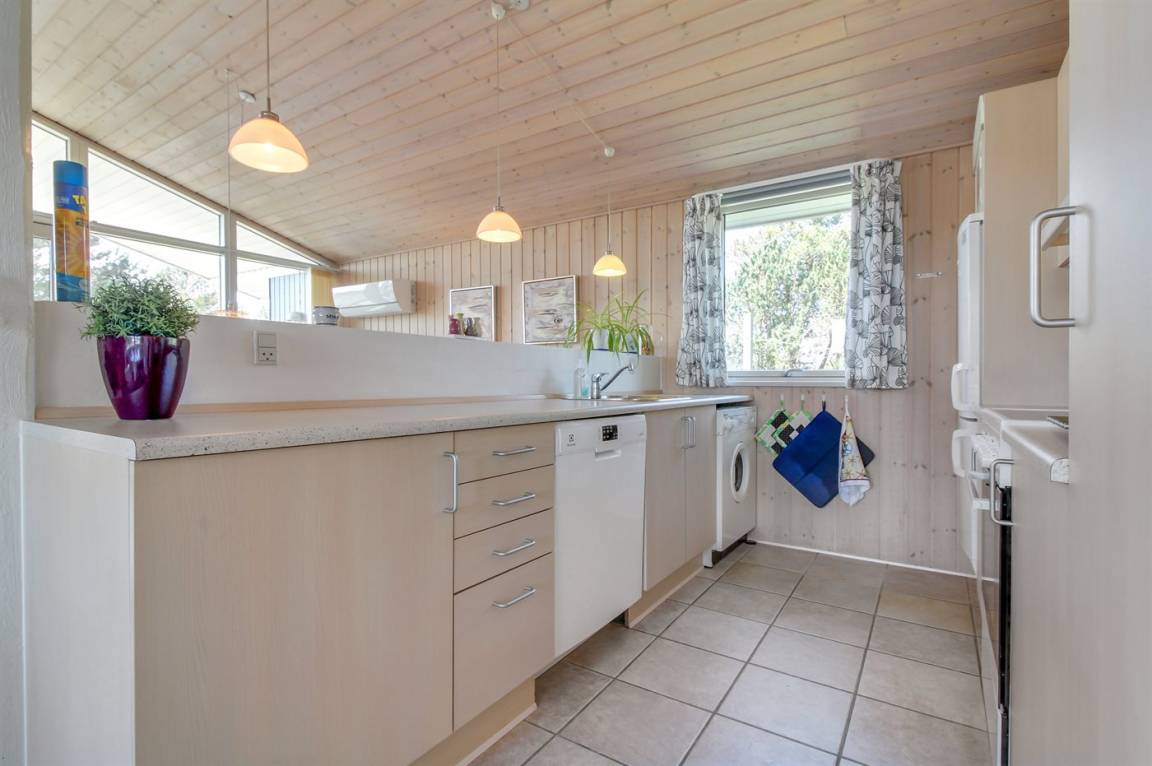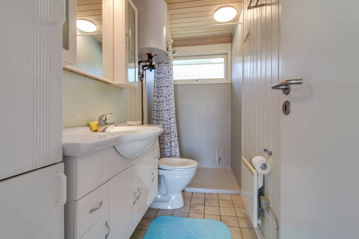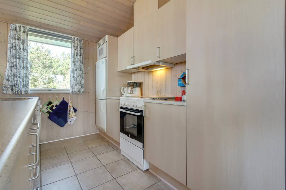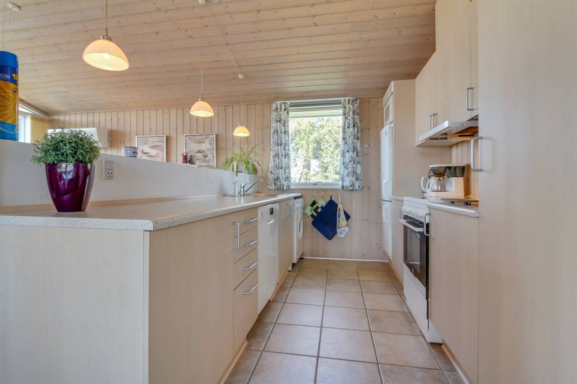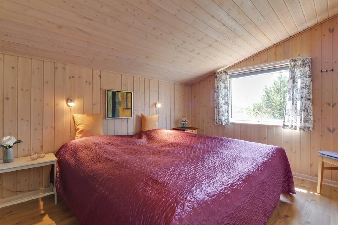 Dieses gemütliche Ferienhaus aus Holz, 1976 gebaut und 2007 renoviert, finden Sie auf einem leicht hügeligen Naturgrundstück mit Gras. Zum Haus gehören sowohl eine offene als auch eine teilweise überdachte Terrassenfläche mit Gartenmöbeln sowie Sandkiste und Schaukel für die Kinder. Innen gibt es Holzwände, hell gebeizte Holzdecken und rustikale Klinkerböden mit Brücken überall. Im Wohnzimmer, das nett möbliert ist, gibt es einen schönen Kaminofen, Stereoanlage mit CD-Spieler, DVD-Spieler und Kabel-TV. Ferner kostenlose, kabellose Internetverbindung vorhanden (Computer ist mitzubringen). Die Küche ist mit Mikrowelle, Geschirrspüler, Waschmaschine sowie Herd mit Umluftofen und Ceran-Feld ausgestattet. Ferner enthält das Haus 3 Schlafzimmer mit je 1 Doppelbett und ein großes Badezimmer mit Duschnische und Fußbodenheizung. Es ist eine energiebesparende Wärmepumpe installiert. Kinderbett und 2 Kinderhochstühle für die Kinder. Das ganze Jahr hindurch ein gutes Ferienhaus.