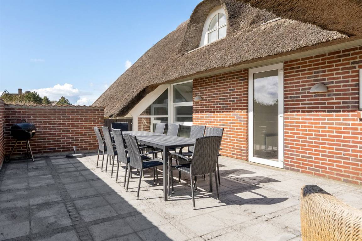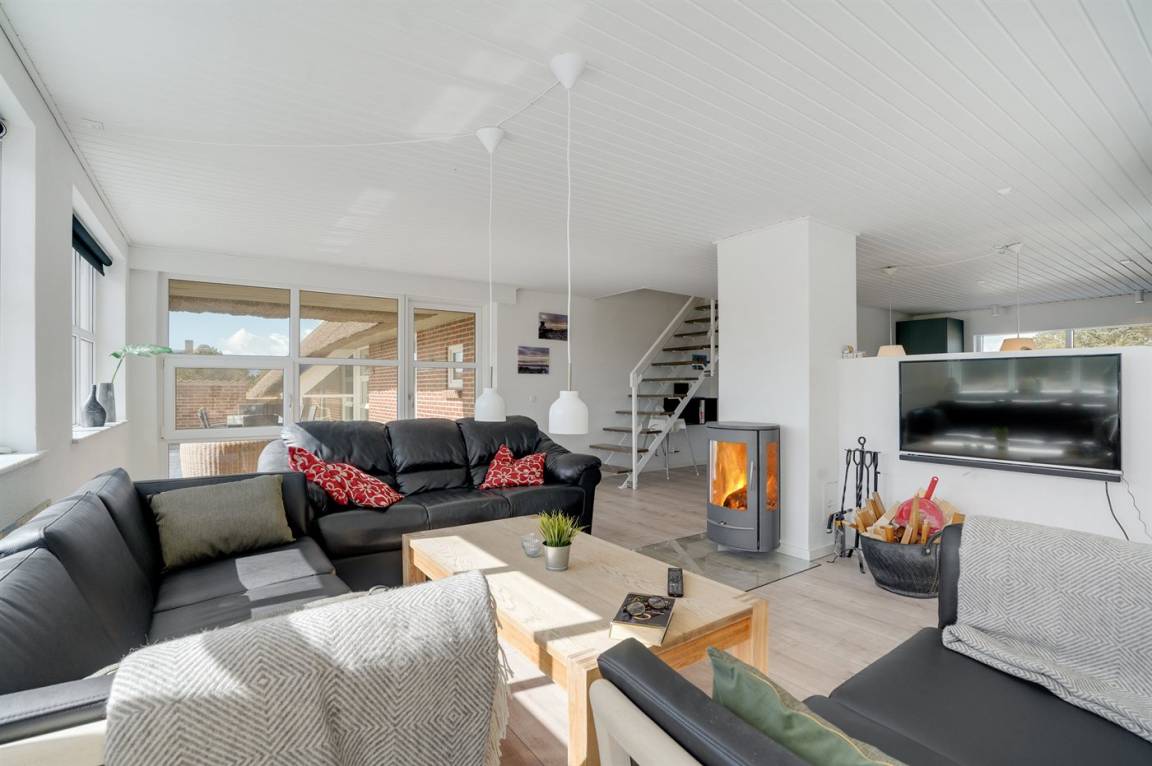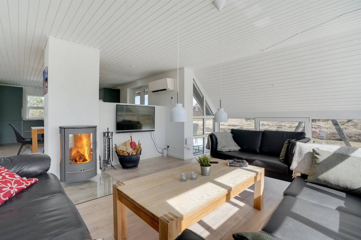 Ein besonders schönes Ferienhaus für den aktiven Urlaub – hier stehen u. a. ein Swimmingpool, ein 4-Pers-Whirlpool und ein Hobbyraum zur Verfügung. Das Haus ist phantastisch gelegen – fußläufig vom schönen Badestrand sowie Blåvands beschaulichem Ortskern entfernt.