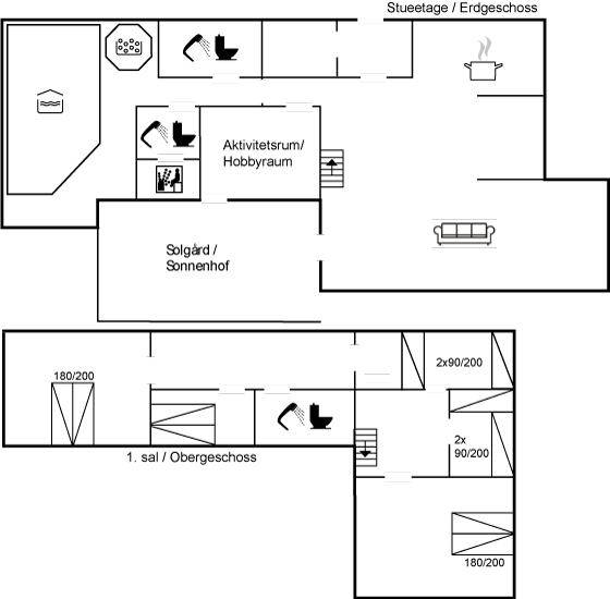 EinrichtungDas Ferienhaus eignet sich für 10 Personen. Die Ferienunterkunft hat eine Wohnfläche von 215 m², ist 2-stöckig, und wurde 1988 gebaut. 2021 wurde die Ferienunterkunft renoviert. Es ist erlaubt 1 Haustier mitzubringen. Die Ferienunterkunft ist mit Waschmaschine ausgestattet. Die Ferienunterkunft verfügt über einen Waschtrockner. Tiefkühlmöglichkeit mit 80 Liter Nutzinhalt. Es gibt außerdem einen Kaminofen.
