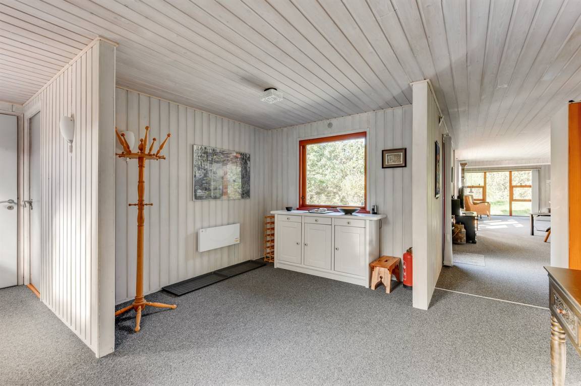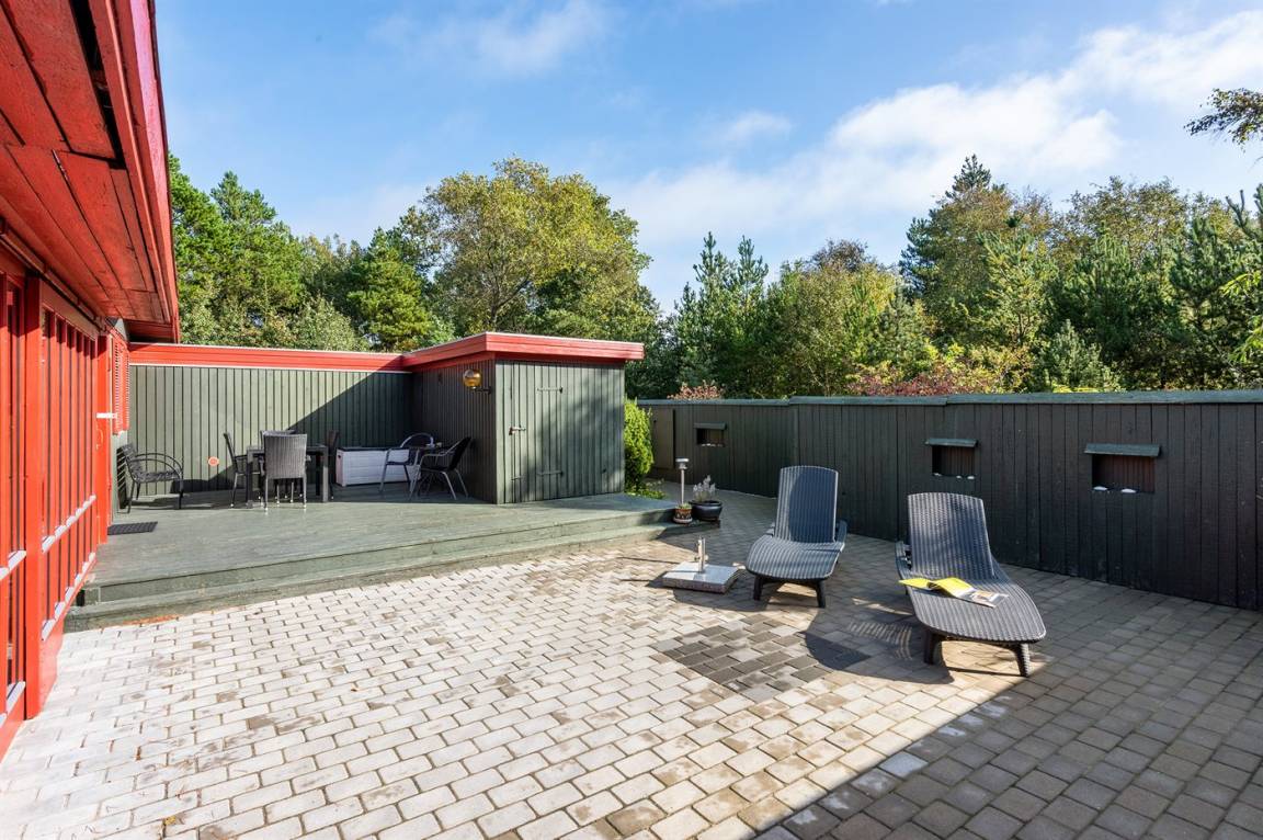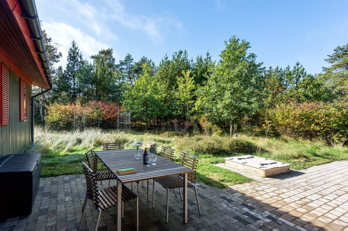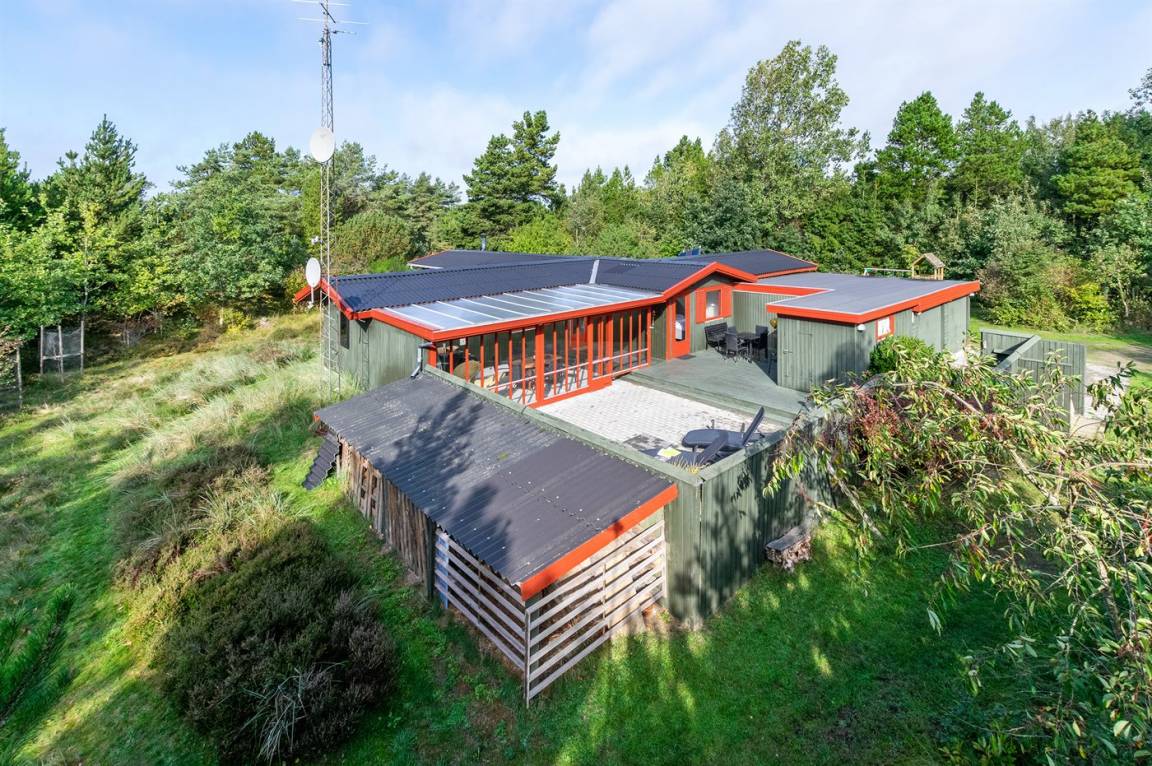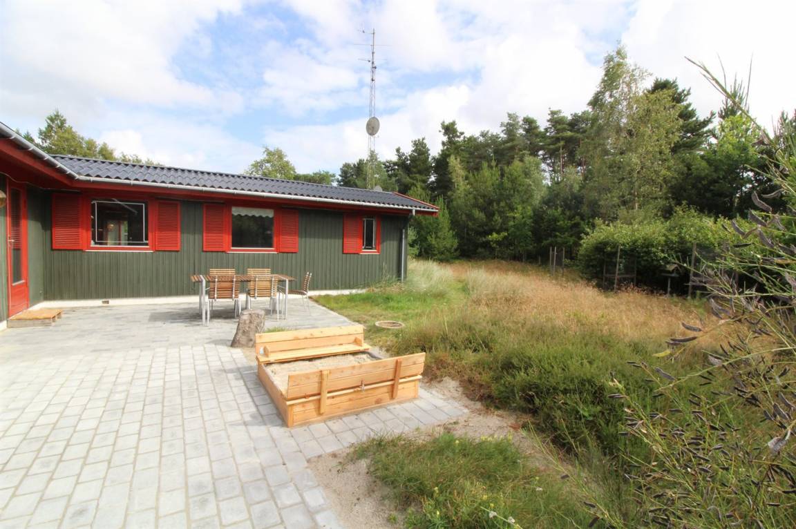 Dieses schöne und geräumige Ferienhaus liegt auf einem großen Grundstück im naturschönen Gebiet bei Ho. Zum Haus gehören eine schöne überdachte Terrasse und ein großer Atriumgarten. Übrigens: Das eine Schlafzimmer ist ein Durchgangszimmer (siehe Grundriss).