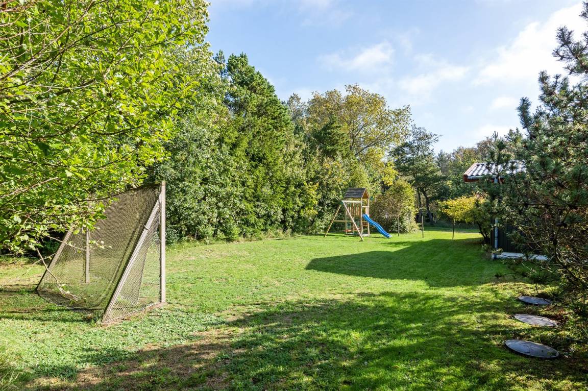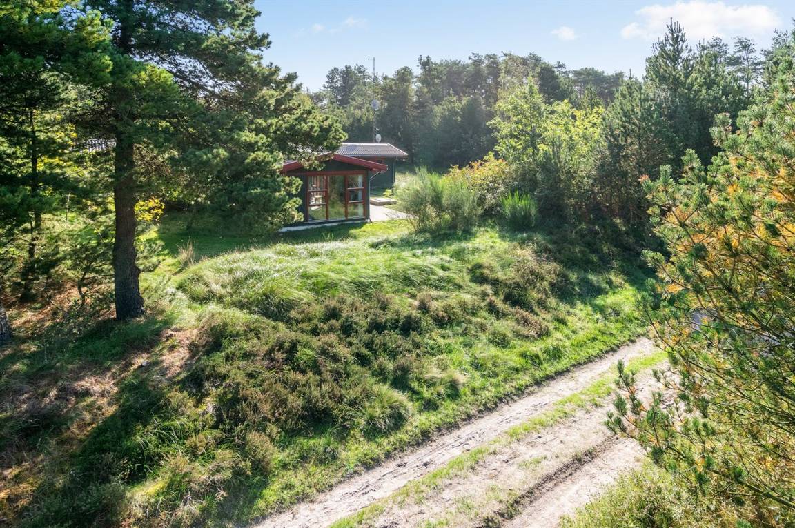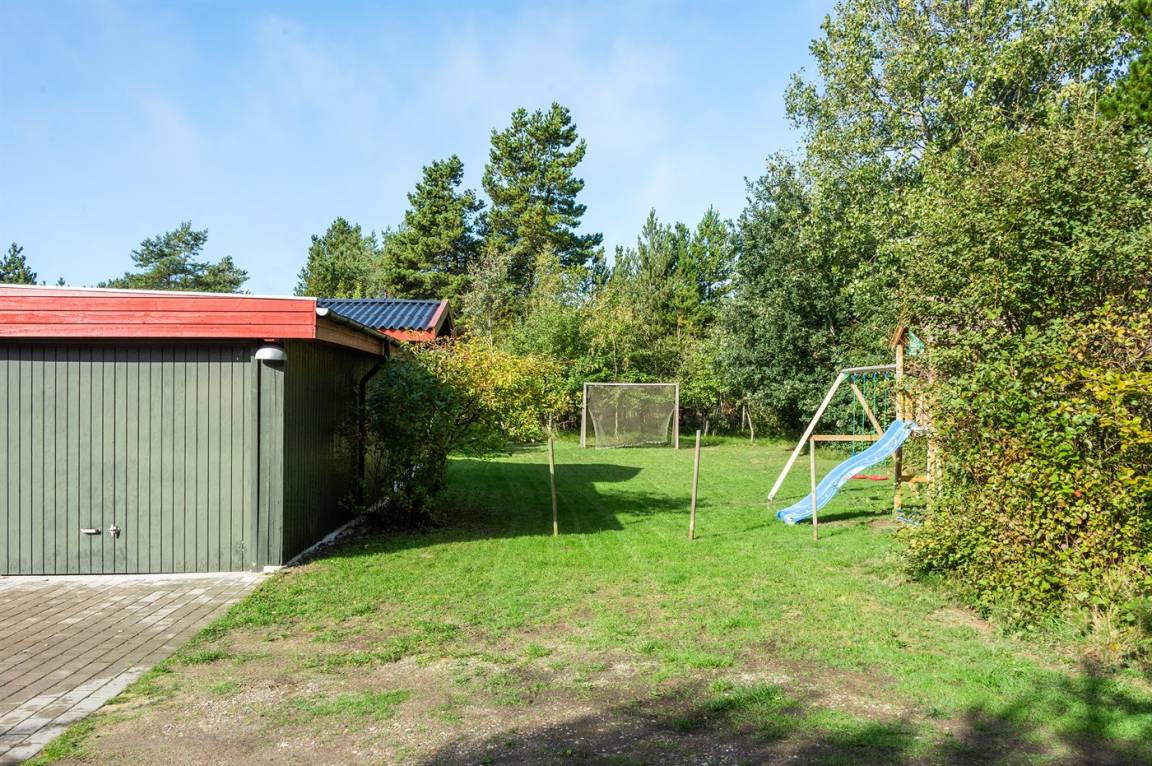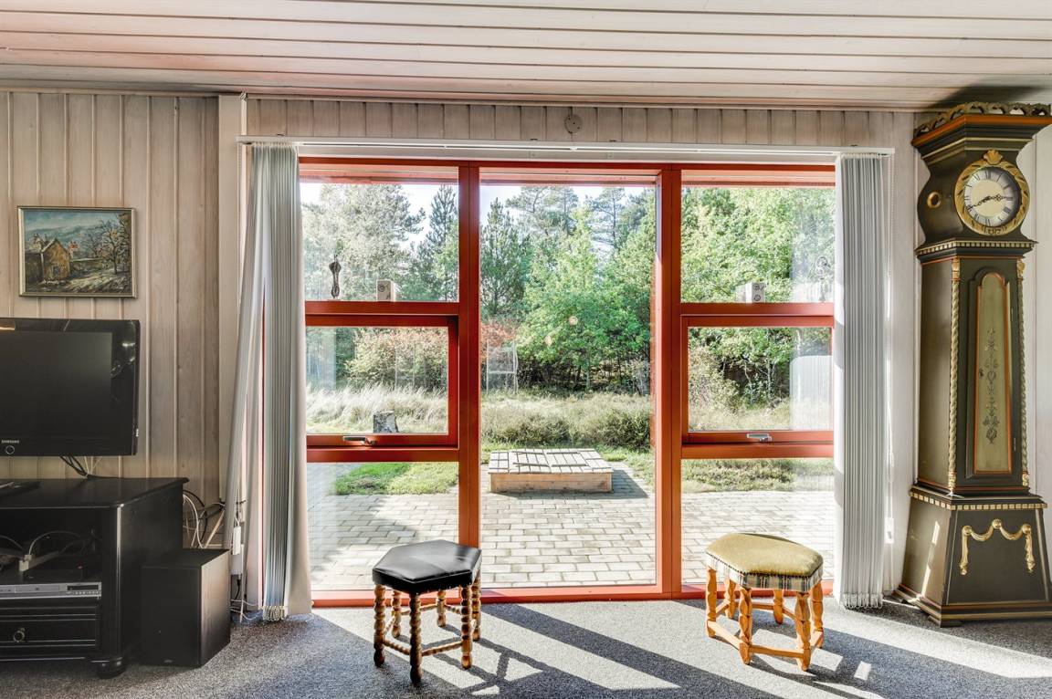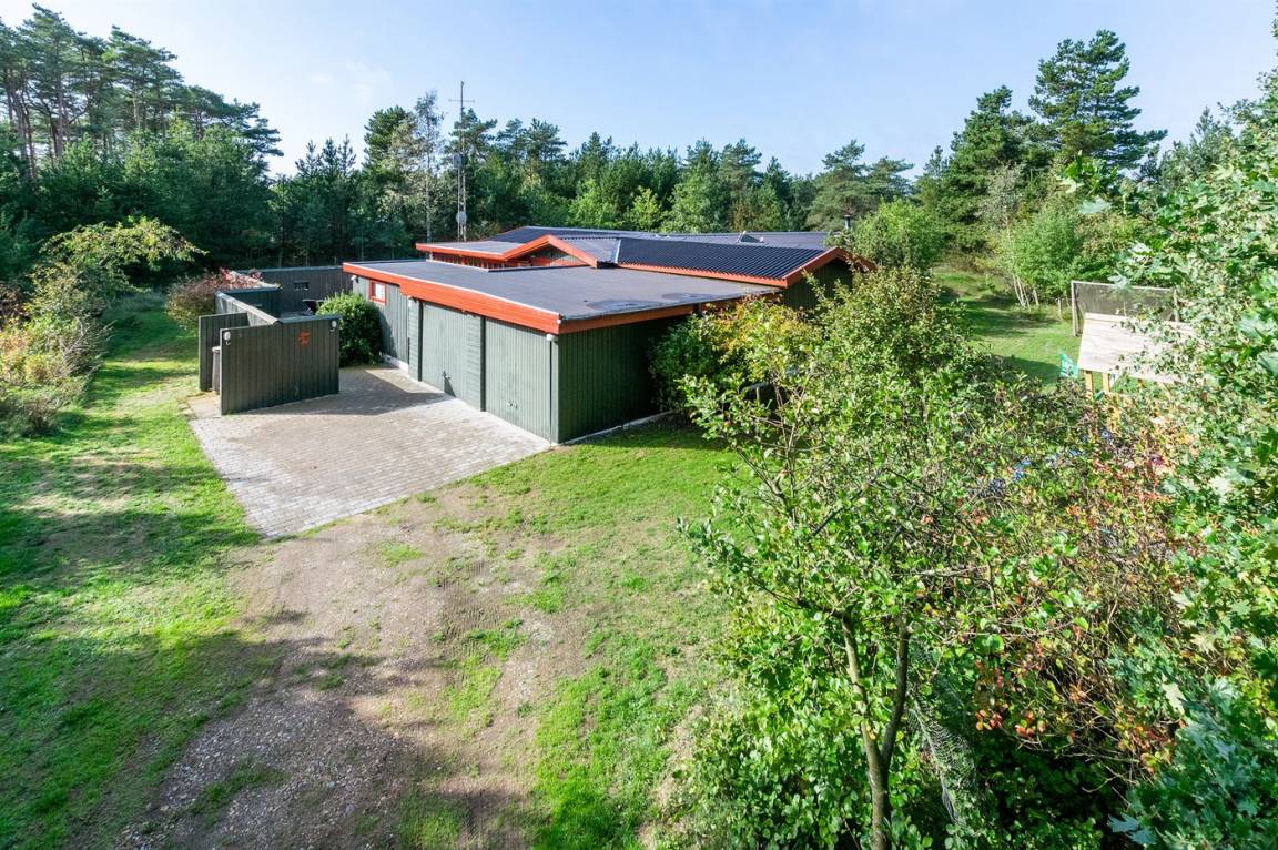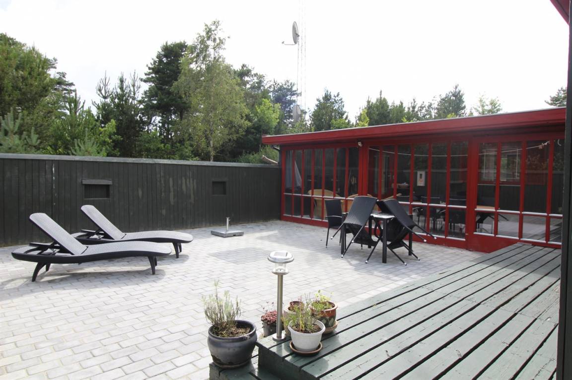 Dieses schöne und geräumige Ferienhaus liegt auf einem großen Grundstück im naturschönen Gebiet bei Ho. Zum Haus gehören eine schöne überdachte Terrasse und ein großer Atriumgarten. Übrigens: Das eine Schlafzimmer ist ein Durchgangszimmer (siehe Grundriss).