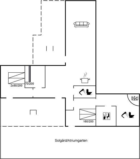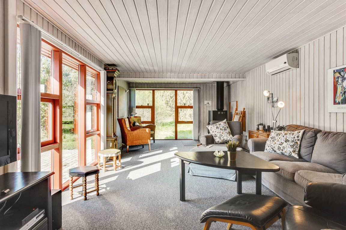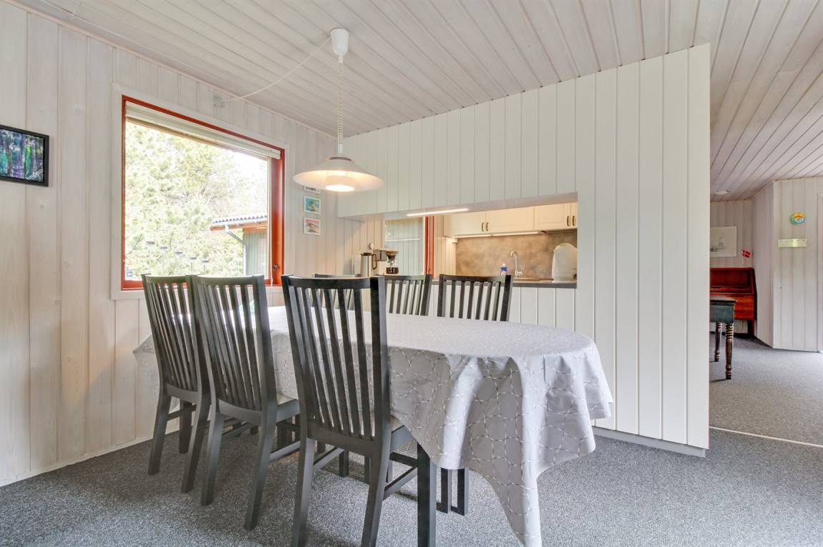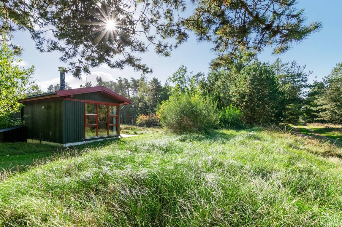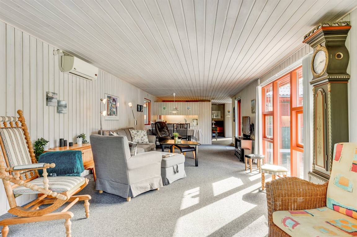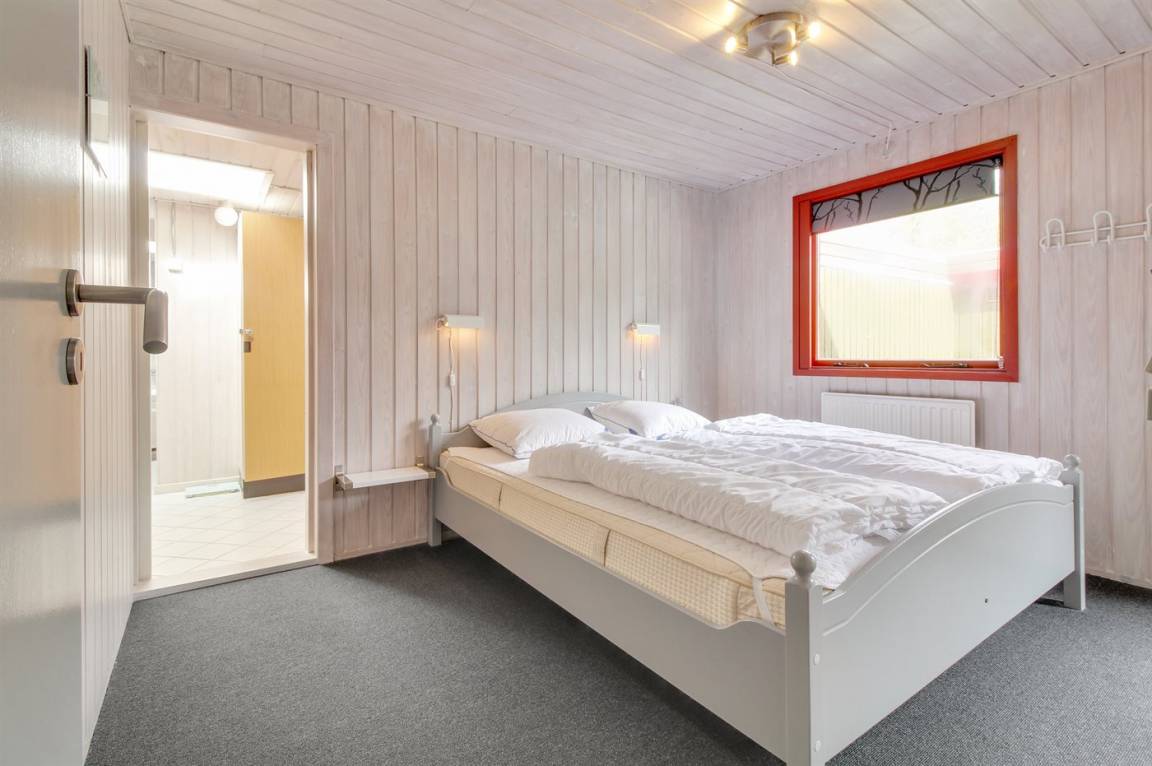 Dieses schöne und geräumige Ferienhaus liegt auf einem großen Grundstück im naturschönen Gebiet bei Ho. Zum Haus gehören eine schöne überdachte Terrasse und ein großer Atriumgarten. Übrigens: Das eine Schlafzimmer ist ein Durchgangszimmer (siehe Grundriss).