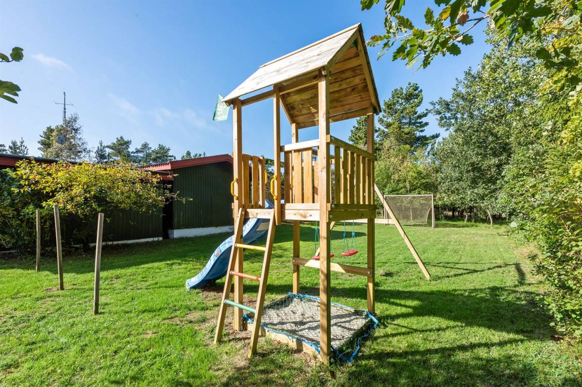 DraußenDie Ferienunterkunft liegt auf einem 2800 m² großen Naturgrundstück. Die Entfernung zum Meer beträgt 4000 m. Die nächste Einkaufsmöglichkeit liegt 7500 m entfernt. Es steht ein 35 m² Terrassenareal zur Verfügung. Davon insgesamt 26 m² geschlossene Terrasse. Zutritt zu einem Atriumgarten. Schaukel. Rutsche. Fußballtor.Es steht eine Garage zur Verfügung. Parkplatz auf dem Grundstück.