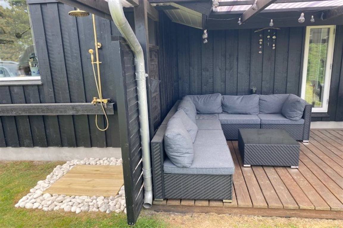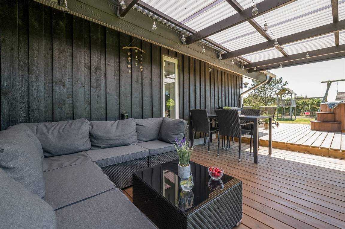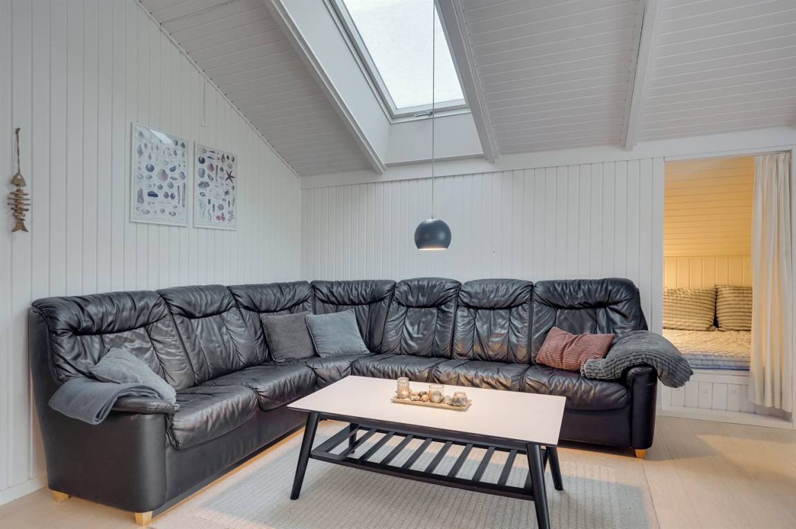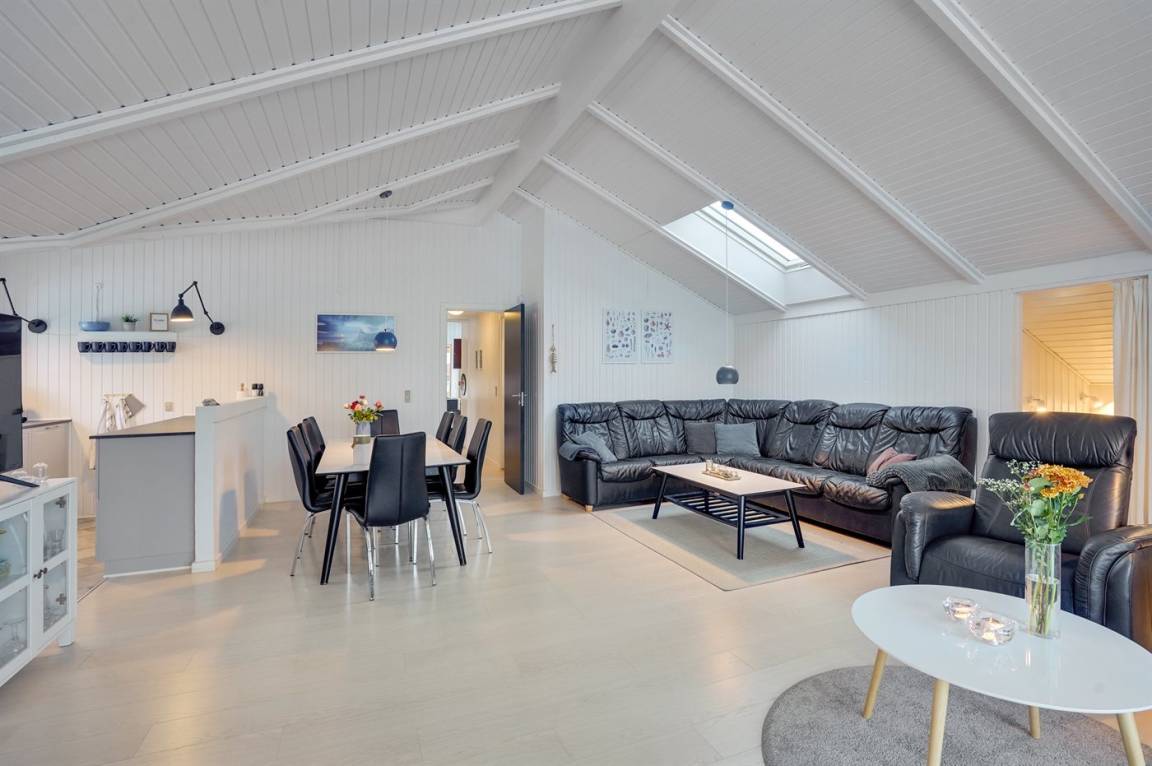 Die helle Küche ist mit dem Wohnzimmer kombiniert und u. a. mit Geschirrspüler, Kühlschrank, Tiefkühlmöglichkeit mit 40 Liter Nutzinhalt, Mikrowelle, 4 elektrische Kochplatten und Umluftofen ausgestattet. Im nett möblierten Wohnzimmer, mit Ausgang zu der überdachten Terrasse, finden Sie Kaminofen, 49" Fernseher, Chromecast, Playstation4, Bluetooth-Lautsprecher, DVD-Player, Radio und CD-Player. Mindestens 4 dänische, 1-3 schwedische, 1-3 norwegische und 1-3 deutsche Fernsehsender.