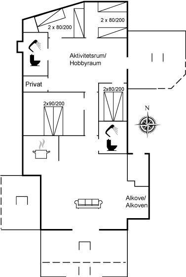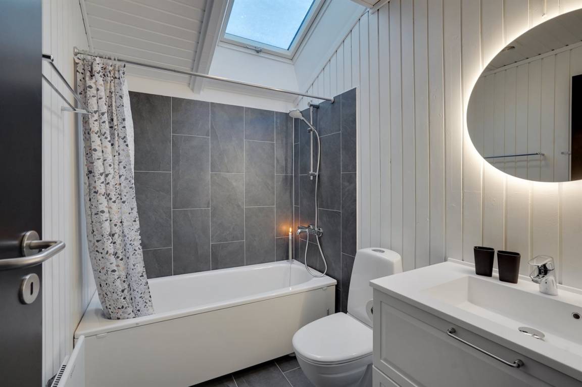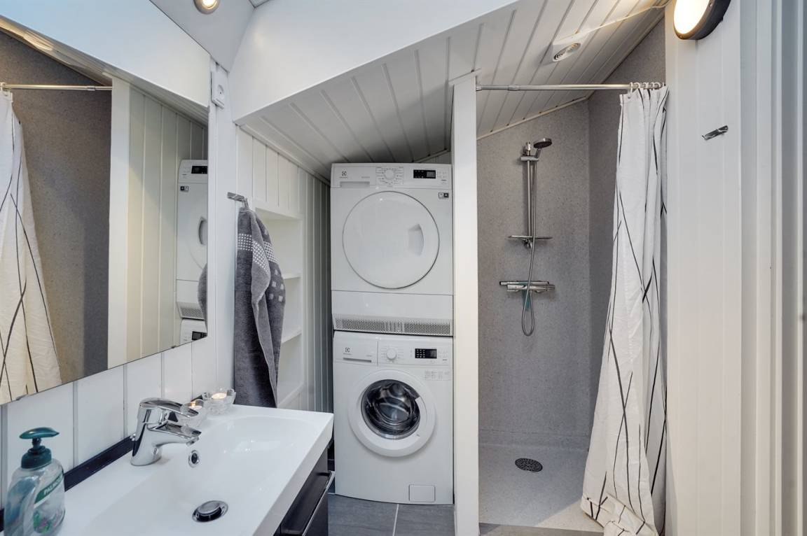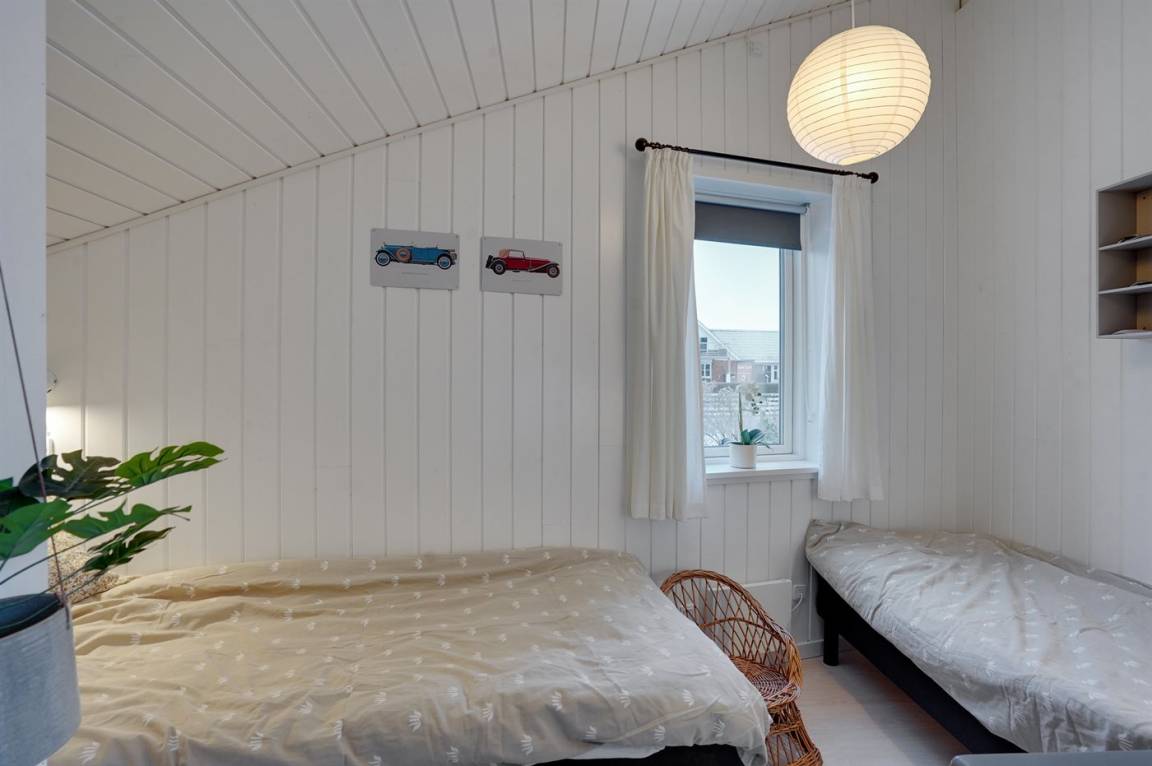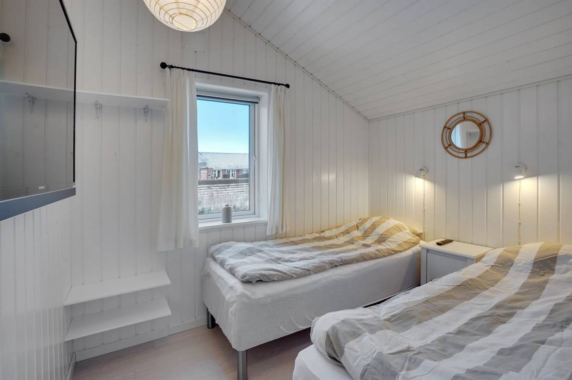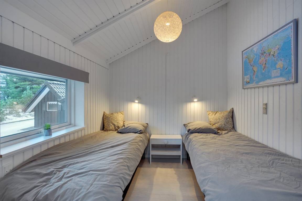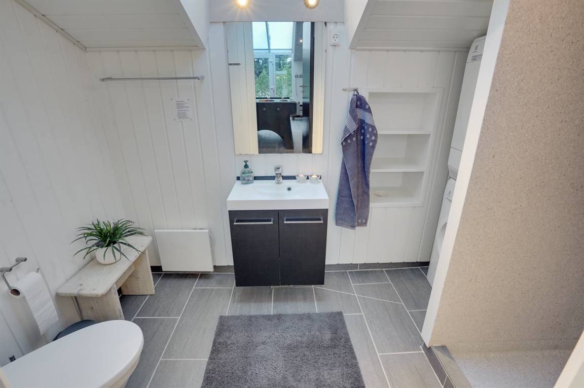 Die Schlafplätze verteilen sich auf 4 Zimmer; 1 mit Doppelbett und 3 mit je 2 Einzelbetten. Außerdem gibt es einen Alkoven mit 2 Schlafplätze im Wohnzimmer. Es gibt 2 schöne Badezimmer mit Fußbodenheizung und Duschnische. An weiterer Ausstattung können kostenlose, kabellose Internetverbindung, Waschmaschine, Wäschetrockner, Kinderbett sowie Kinderhochstuhl erwähnt werden und es ist eine energiesparende Wärmepumpe installiert.