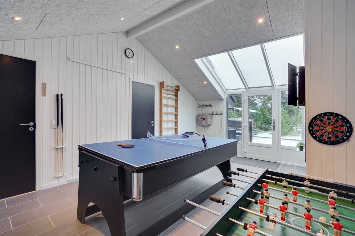 Das Ferienhaus eignet sich für 8 Personen sowie 1 Kleinkind bis zu 3 Jahren, wurde 1983 gebaut, 2017 völlig renoviert und 2022 mit neuer Küche und Badezimmer modernisiert. Im Hobbyraum trifft sich Jung und Alt - hier stehen Pooltisch, Tischtennis, Dart, Airhockey und Tischfußball sowie Fernseher und eine Sprossenwand zur Verfügung.