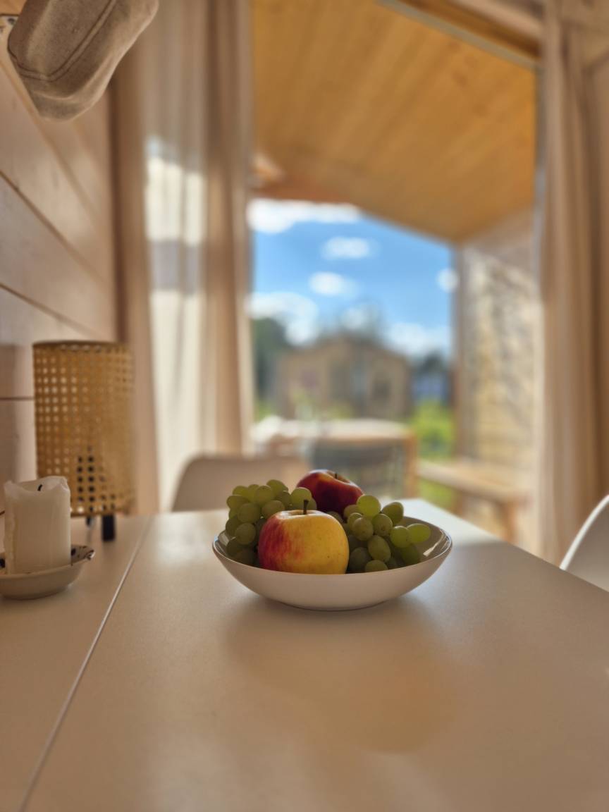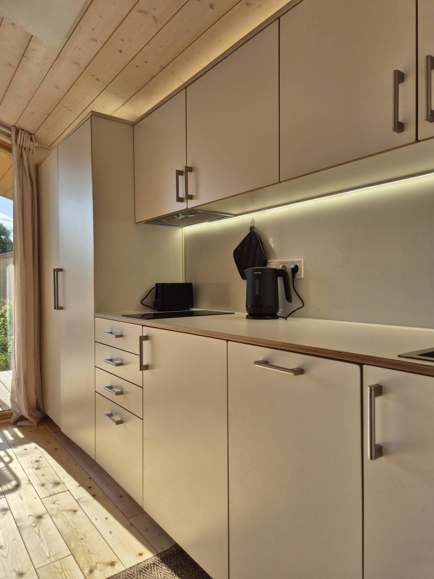 Neben dem kostenlosem WLAN und dem Smart-TV im Wohnbereich ist das Häuschen ausgestattet mit: