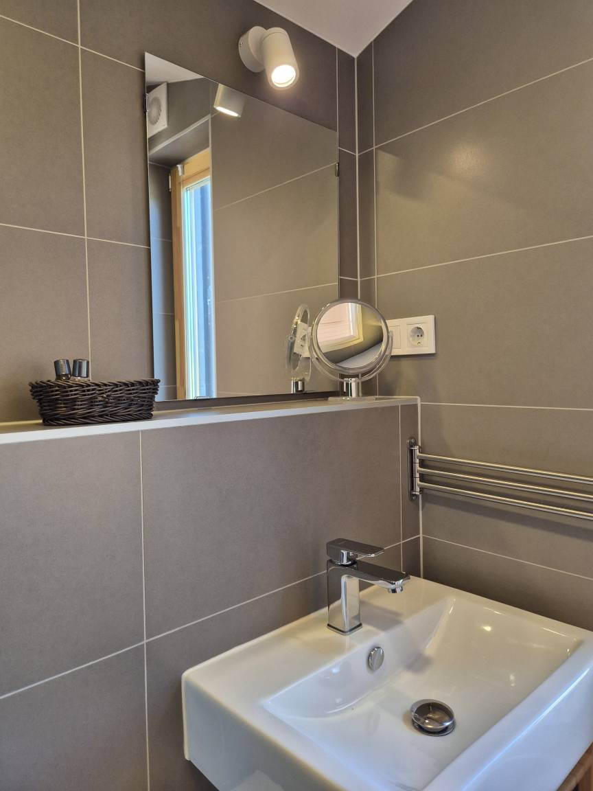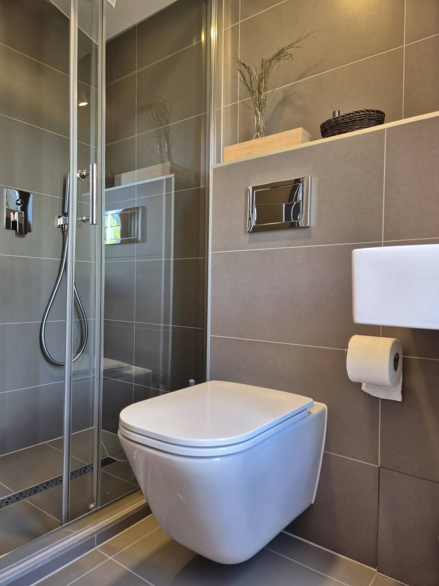 1 Badezimmer mit WC, Regendusche und Haartrockner