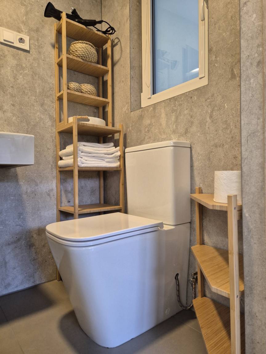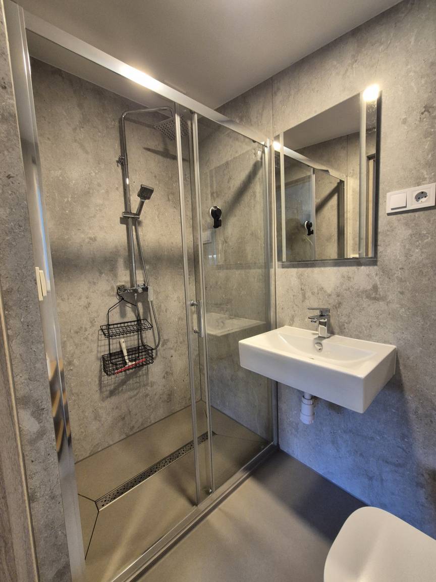1 Badezimmer mit WC, Regendusche und Haartrockner
