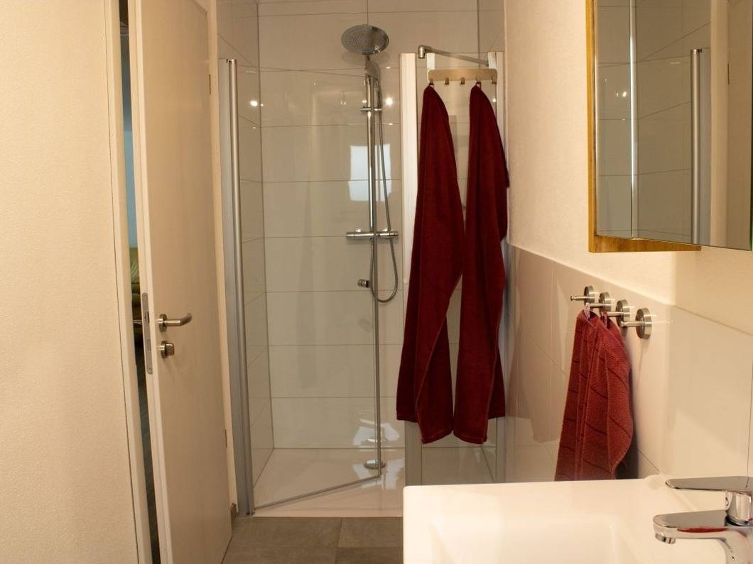 Gäste-WC und Bad mit bodengleicher Dusche, Fön, Waschmaschine