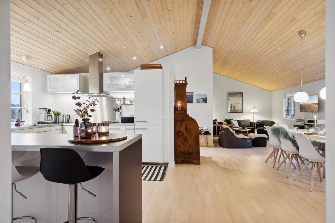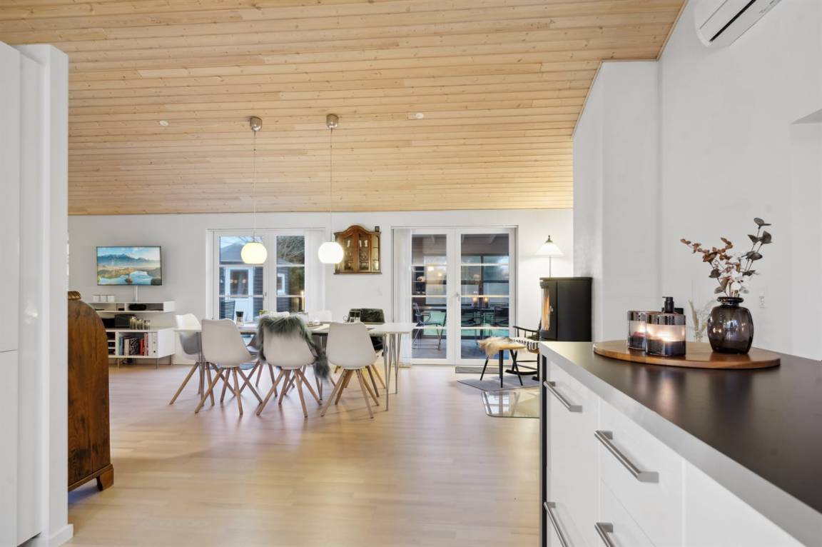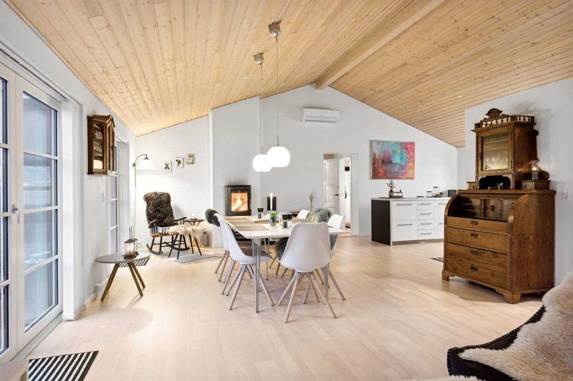 Das Ferienhaus eignet sich für 6 Personen sowie 1 Kleinkind bis zu 3 Jahren. Die Ferienunterkunft hat eine Wohnfläche von 113 m² und wurde 2013 gebaut. Haustiere dürfen nicht mitgebracht werden. In der Ferienunterkunft ist eine energiesparender Luft zu Luft Wärmepumpe installiert. Fußbodenheizung in der Diele. Fußbodenheizung im Flur. Die Ferienunterkunft ist mit Waschmaschine ausgestattet. Wäschetrockner. Tiefkühlmöglichkeit mit 50 Liter Nutzinhalt. Es gibt außerdem einen Kaminofen. Für die jüngsten Feriengäste ist 1 Kinderhochstuhl vorhanden.
