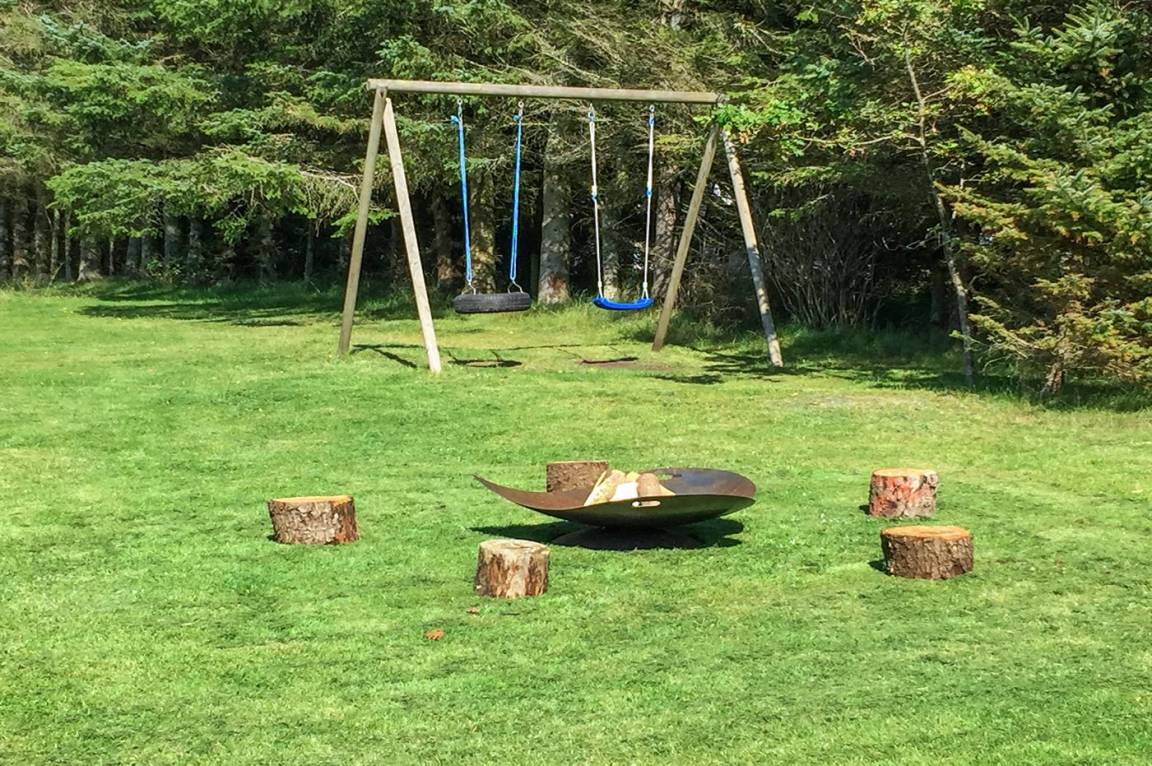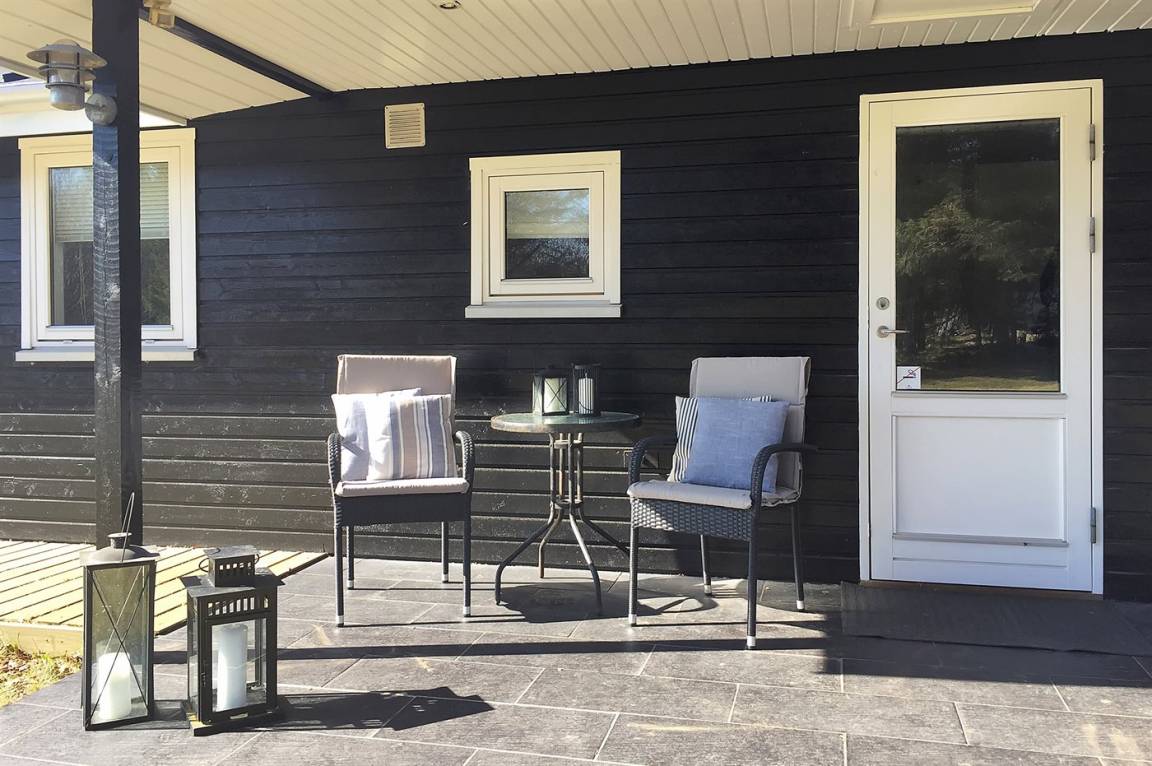 DraußenDie Ferienunterkunft liegt auf einem 2500 m² großen Naturgrundstück. Die Entfernung zum Meer beträgt 1700 m. Die nächste Einkaufsmöglichkeit liegt 1100 m entfernt. Es steht ein 90 m² Terrassenareal zur Verfügung. Außerdem gibt es 6 m² überdachte Terrasse. Schaukel. Sandkasten.Lagerfeuerstelle. Parkplatz auf dem Grundstück.