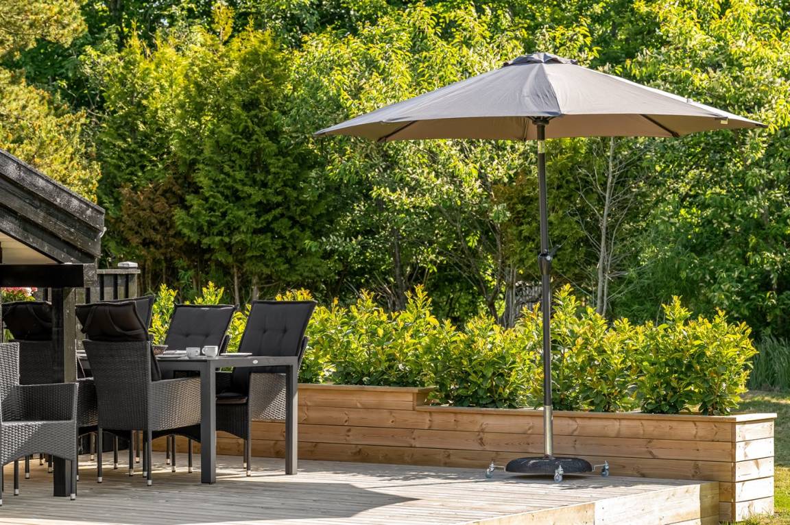 DraußenDie Ferienunterkunft liegt auf einem 1650 m² großen Naturgrundstück. Die Entfernung zum Meer beträgt 2200 m. Die nächste Einkaufsmöglichkeit liegt 700 m entfernt. In einem Abstand von 4000 m gibt es einen Golfplatz. Es steht ein 20 m² Terrassenareal zur Verfügung. Außerdem gibt es 10 m² überdachte Terrasse. Trampolin. Fußballtor. Es steht ein Grill zur Verfügung. Parkplatz auf dem Grundstück.