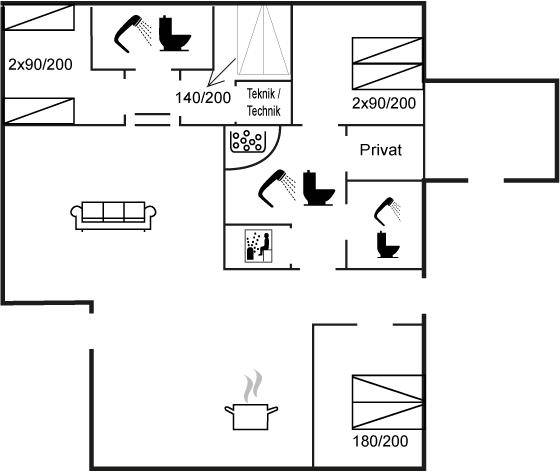 SchlafverhältnisseDie Schlafplätze verteilen sich auf 4 Schlafräume. 4 Schlafplätze in Doppelbetten. 4 Schlafplätze in Einzelbetten.