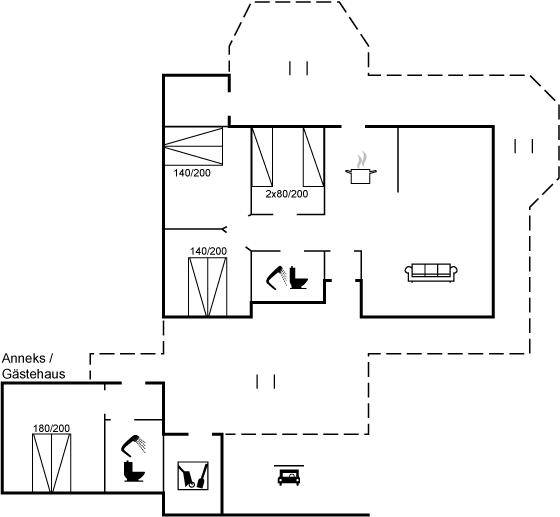 An weiterer Ausstattung können 1 Smart-TV mit mindestens 4 dänische, 1-3 deutsche, schwedische und norwegische Fernsehsender sowie Radio erwähnt werden und es ist kabellose Internetverbindung installiert.