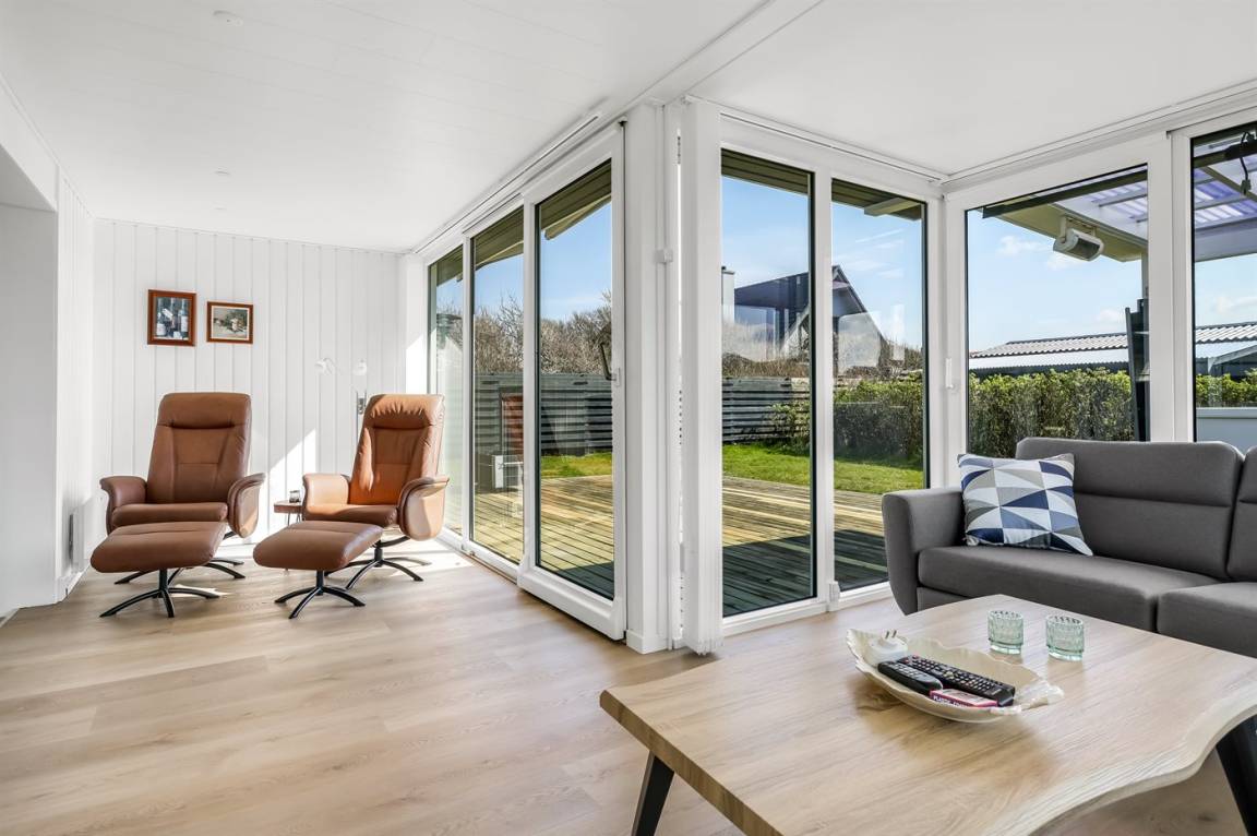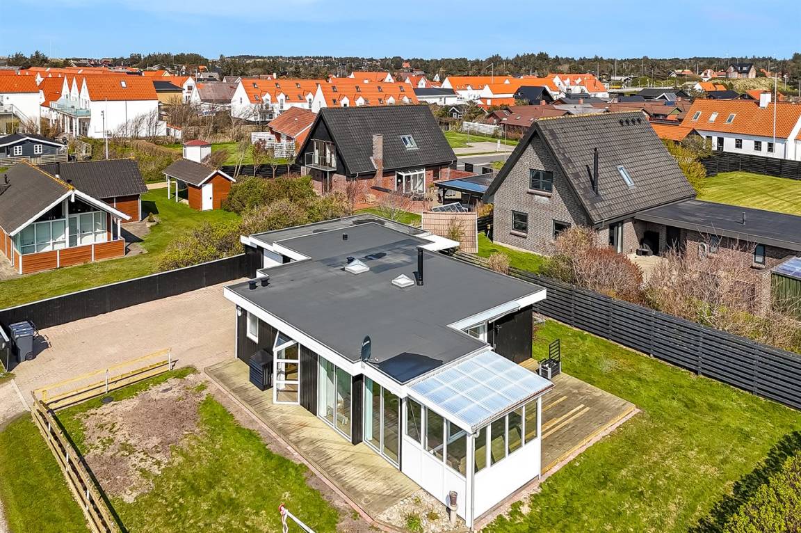 Gemütliches und hübsch modernisiertes Ferienhaus mit sehr zentraler Lage in Blokhus - nur 2 Minuten zu Fuß zum Stadtplatz und wenige Minuten zum Strand und der schönen Natur der Umgebung. Auf einem gemütlichen Grundstück mit guten Außenbereichen wie einer großen Terrasse, überdachten Terrasse und einem schönen geschlossenen Garten mit Rasenfläche.