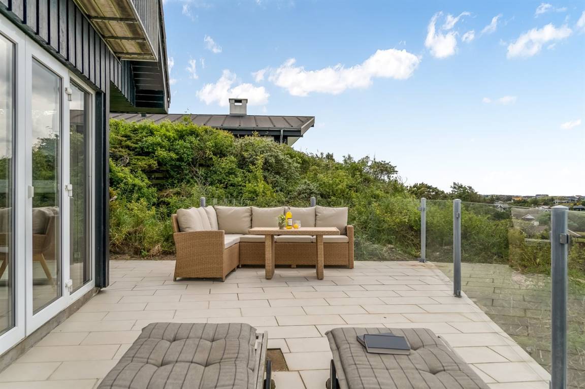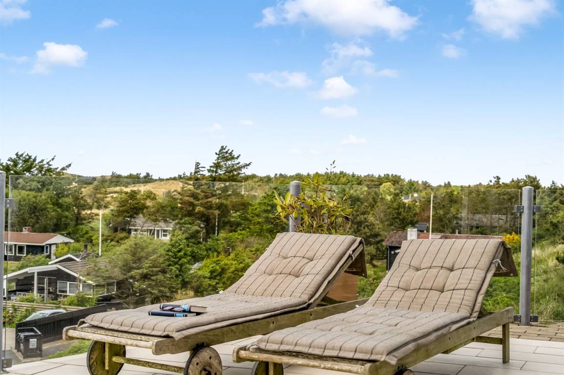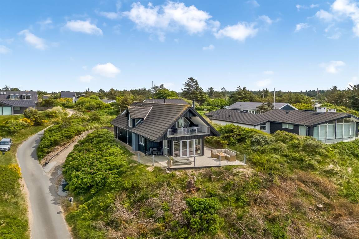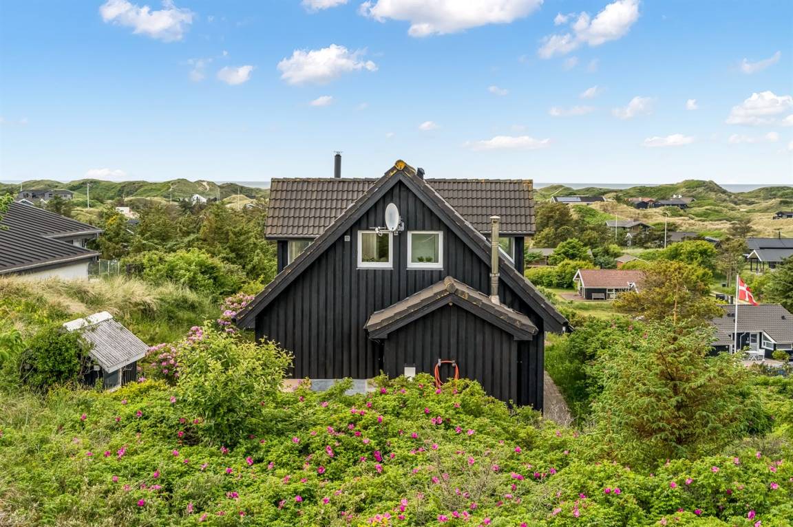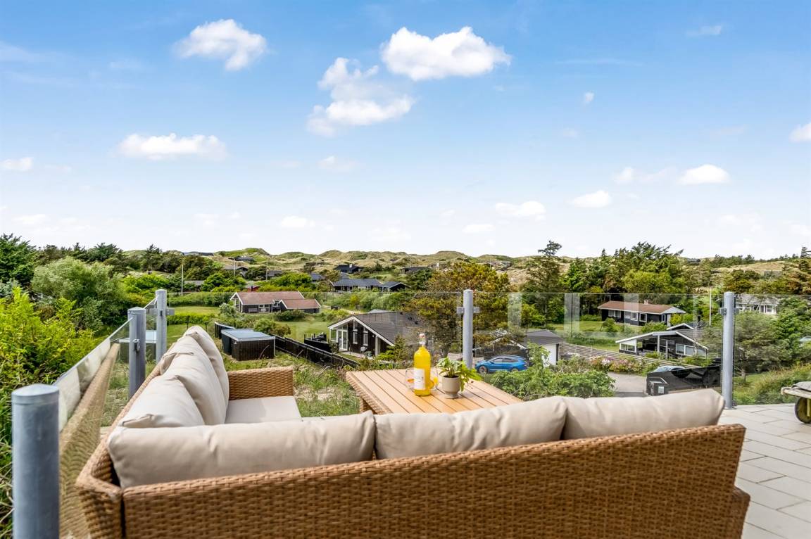 Mit besonders guter Lage, auf einem Naturgrundstück nur 700 m von der Nordsee entfernt, finden Sie dieses Ferienhaus. Das Haus liegt hoch mit Panoramablick über Blokhus, Aussicht über das Meer und das Gebiet mit Dünen und Grünflächen.