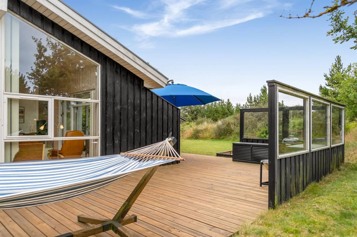 Das Haus hat eine tolle Lage mit kurzer Entfernung zu beliebten Attraktionen wie dem Freizeitpark Fårup Sommerland und ist nur eine kurze Radtour vom breiten Sandstrand der Nordsee, dem Zentrum von Blokhus, dem Golfplatz und den Outdoor-Padelplätzen entfernt. Die Umgebung bietet außerdem eine wunderschöne Natur und gute Möglichkeiten für Wanderungen und Radtouren an.