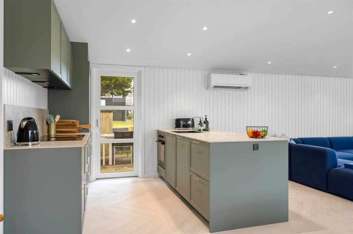 KücheDie Küche ist mit Kühlschrank ausgestattet. Außerdem gibt es 4 Induktions-Kochzonen, Umluftofen, Mikrowelle sowie Geschirrspüler.