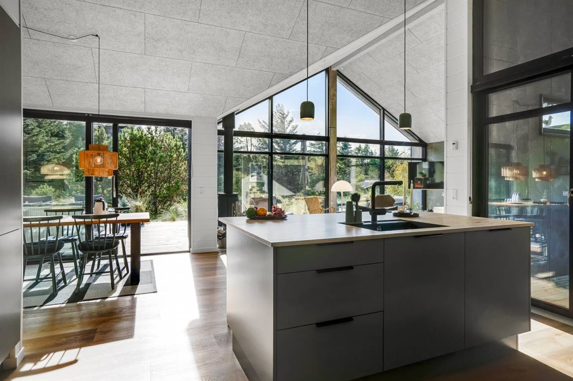 Sobald ihr das Haus betretet, werdet ihr von einem hellen und einladenden Wohnbereich empfangen, mit großen Fensterfronten, die das Tageslicht hereinlassen und die wunderschöne Landschaft ganz nah heranbringen. Beginnt den Tag mit einem leckeren Frühstück in der offenen Küche, während ihr die Aussicht auf die Natur genießt. Später könnt ihr euch auf dem Sofa entspannen und dieselbe atemberaubende Aussicht bewundern oder den Kamin anzünden, der an kühlen Tagen Wärme und Gemütlichkeit verbreitet.