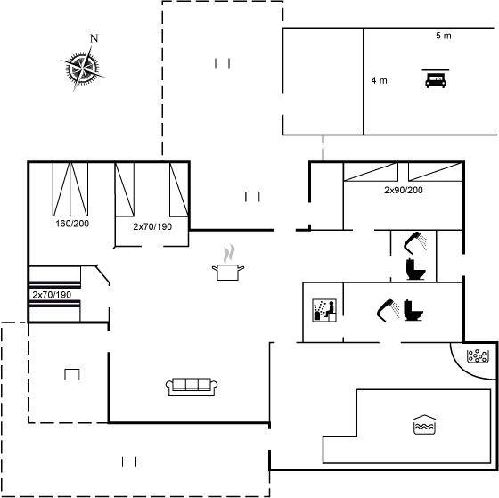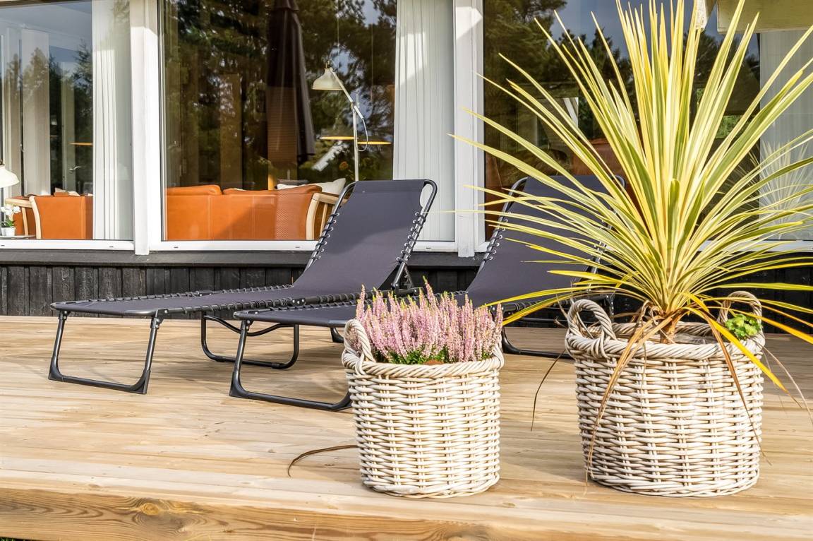 DraußenDie Ferienunterkunft liegt auf einem 2523 m² großen Naturgrundstück. Die Entfernung zum Meer beträgt 1450 m. Die nächste Einkaufsmöglichkeit liegt 2000 m entfernt. Es steht ein 100 m² Terrassenareal zur Verfügung. Außerdem gibt es 16 m² überdachte Terrasse. Geräteraum. Schaukel. Sandkasten. Es steht ein Carport zur Verfügung. Parkplatz auf dem Grundstück.