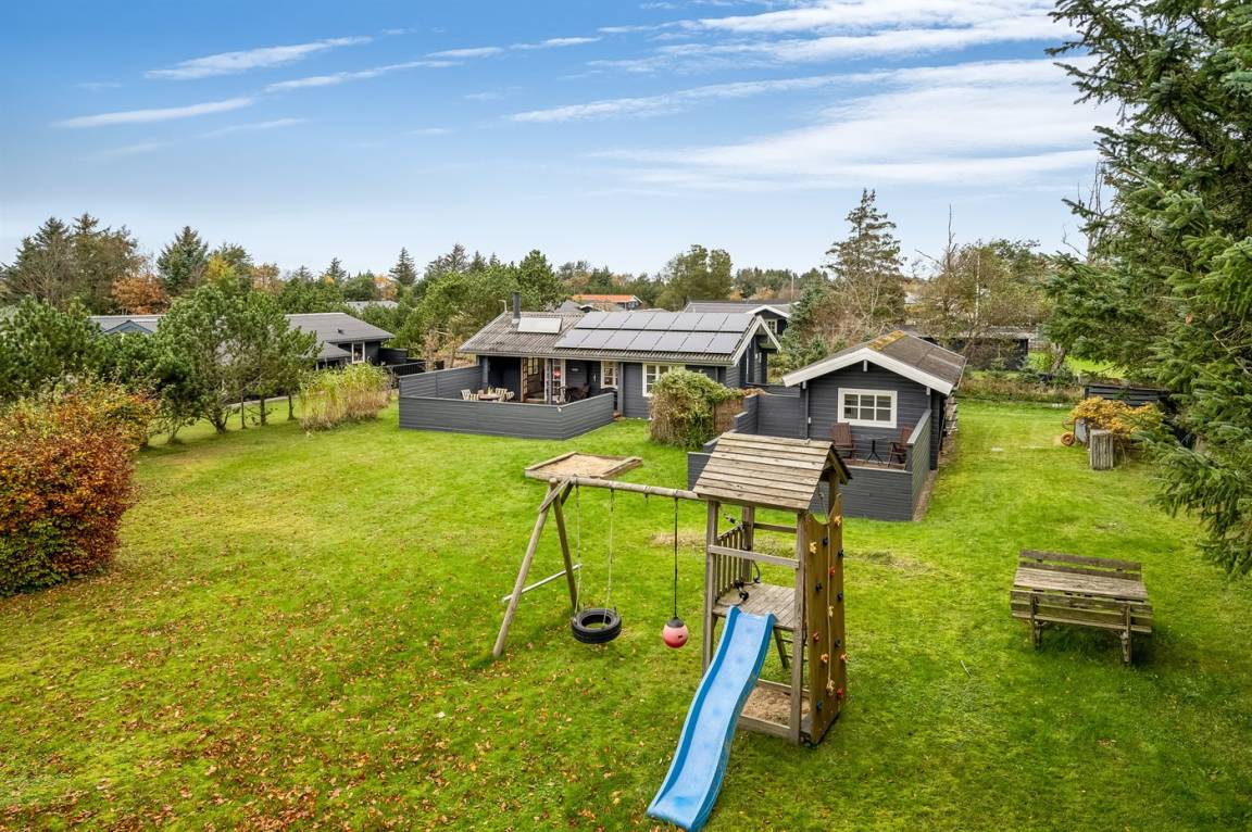 DraußenDie Ferienunterkunft liegt auf einem 1240 m² großen Gartengrundstück. Die Entfernung zum Meer beträgt 1100 m. Die nächste Einkaufsmöglichkeit liegt 1100 m entfernt. Es steht ein offenes Terrassenareal zur Verfügung. Außerdem gibt es überdachte Terrasse. Schaukel. Sandkasten. Spielturm. Fußballtor. Es steht ein Grill zur Verfügung. Parkplatz auf dem Grundstück.