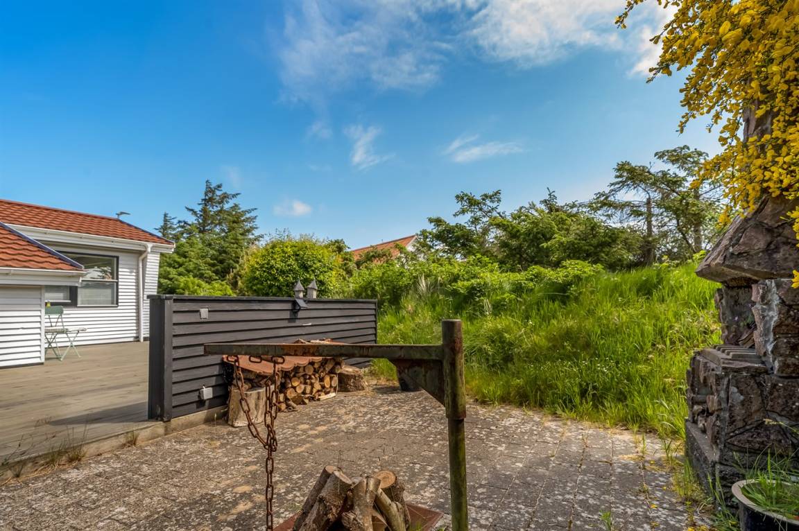 DraußenDie Ferienunterkunft liegt auf einem 2342 m² großen Naturgrundstück. Das Grundstück ist eingezäunt. Die Entfernung zum Meer beträgt 900 m. Die nächste Einkaufsmöglichkeit liegt 700 m entfernt. In einem Abstand von 4000 m gibt es einen Golfplatz. Es steht ein offenes Terrassenareal zur Verfügung. Die Entfernung zu einem Spielplatz beträgt 400 m.Lagerfeuerstelle. Außendusche. An Sommerabenden sorgt der Außenkamin für eine gemütliche Atmosphäre. Es steht ein Grill zur Verfügung. Es ist ein Ladestecker für Elektroautos installiert. Parkplatz auf dem Grundstück.