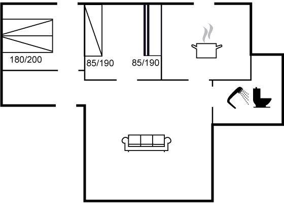 SchlafverhältnisseDie Schlafplätze verteilen sich auf 2 Schlafräume. 2 Schlafplätze in einem Doppelbett.1 Schlafplatz in einem Einzelbett. 2 Schlafplätze in einem Etagenbett.